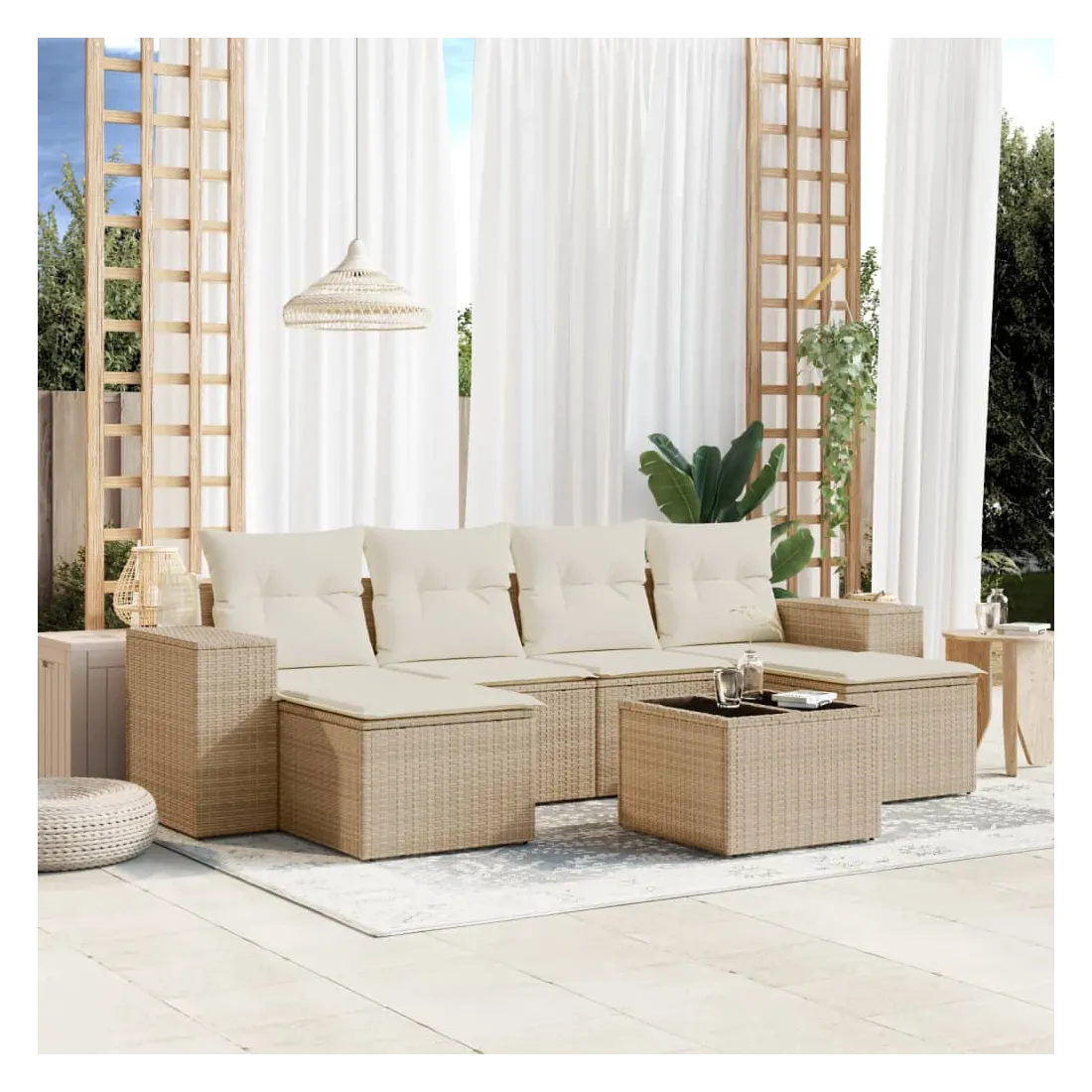 Cet ensemble de canapés de jardin est le complément parfait de votre arrière-cour, terrasse ou patio, offrant un espace confortable et accueillant pour discuter avec la famille et les amis ou simplement se détendre et profiter de l'extérieur. Matériau durable : la résine tressée, également connue sous le nom de poly rotin, est un matériau synthétique solide et nécessitant peu d'entretien qui ressemble au rotin naturel. Il est léger, facile à nettoyer et couramment utilisé pour les meubles d'extérieur en raison de sa durabilité et de ses propriétés de résistance aux intempéries.Fonction de rangement avec sac résistant à l'eau : le mobilier de jardin dispose d'un espace de rangement sous l'assise, complété par un sac résistant à l'eau pour ranger coussins, jouets et autres objets. Le sac intérieur peut être solidement fixé au mobilier d'extérieur grâce à des attaches auto-agrippantes pour plus de stabilité.Dessus en verre : le dessus de la table d'extérieur est fabriqué en verre trempé solide et durable, ce qui le rend facile à nettoyer avec un chiffon humide et ajoute une touche d'élégance à votre espace extérieur.Housse amovible et lavable : ces coussins de siège sont dotés de housses amovibles pour un lavage et un entretien faciles.Conception modulaire : cet ensemble de meubles d'extérieur a une conception modulaire, ce qui le rend complètement flexible et facile à déplacer, afin que vous puissiez créer un agencement de meubles d'extérieur personnalisé. Bon à savoir :Pour que vos meubles d'extérieur restent beaux, nous vous recommandons de les protéger avec une housse imperméable.