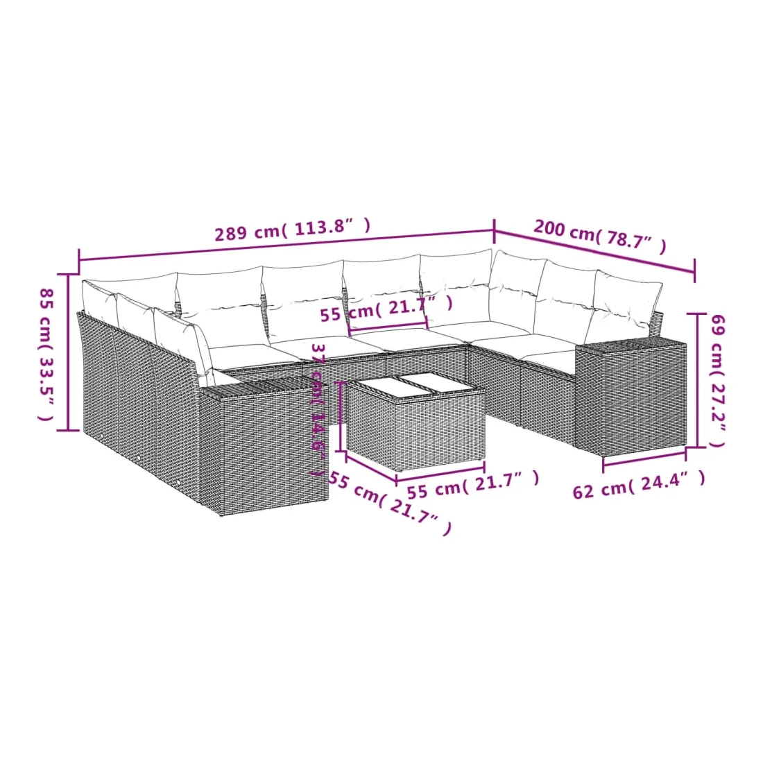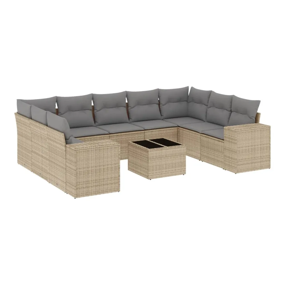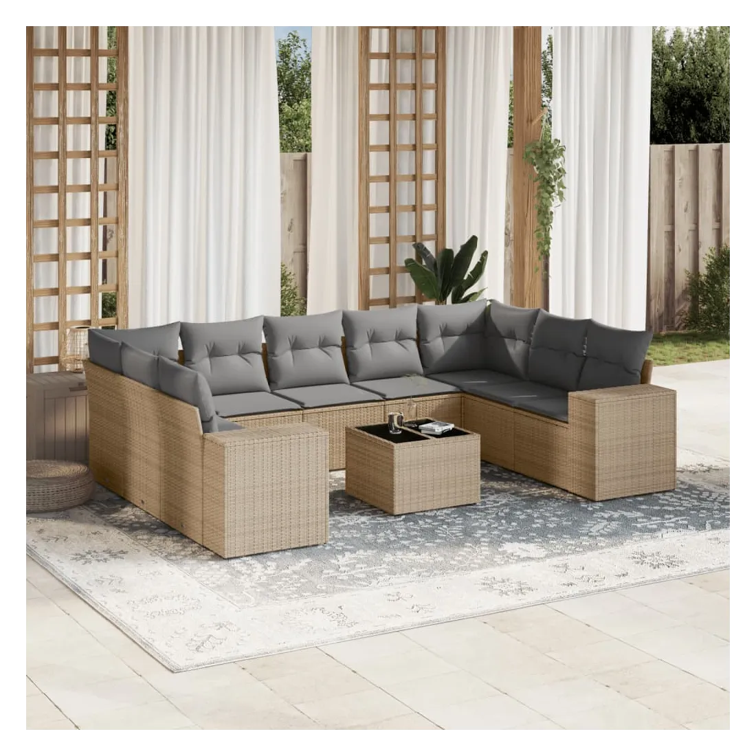 Salon de jardin avec coussins 10 pcs beige résine tressée