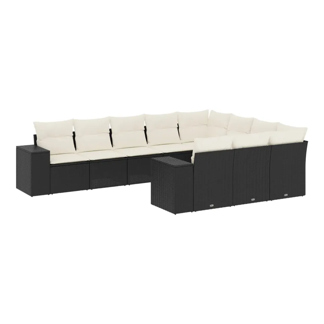 Salon de jardin 10 pcs avec coussins noir résine tressée