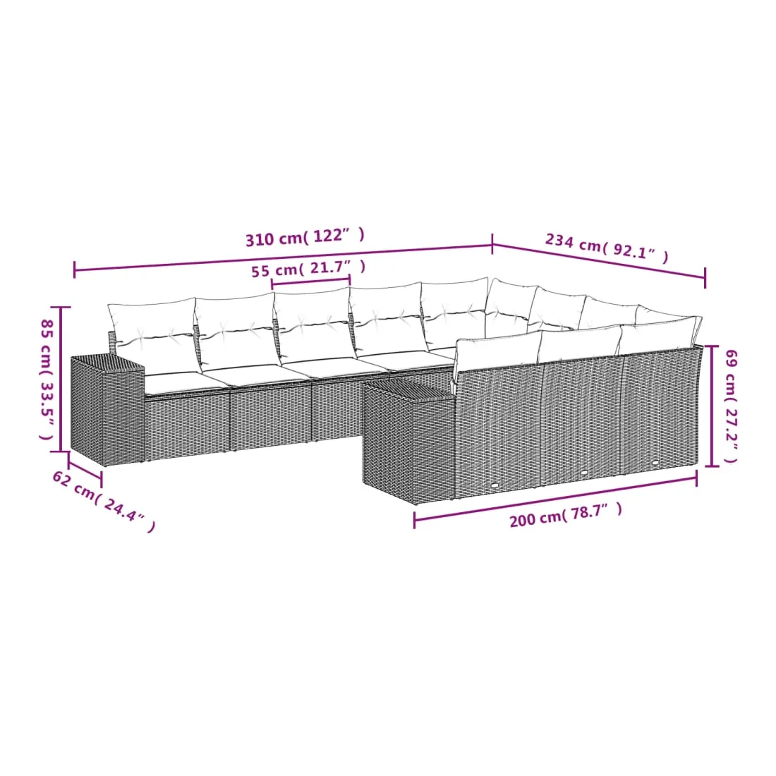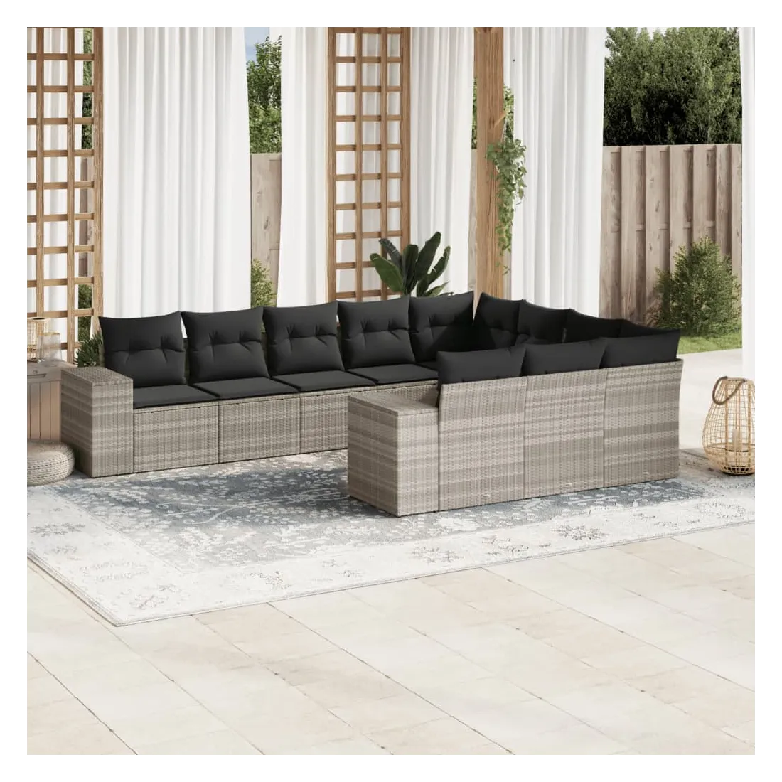 Salon de jardin avec coussins 10 pcs gris clair résine tressée