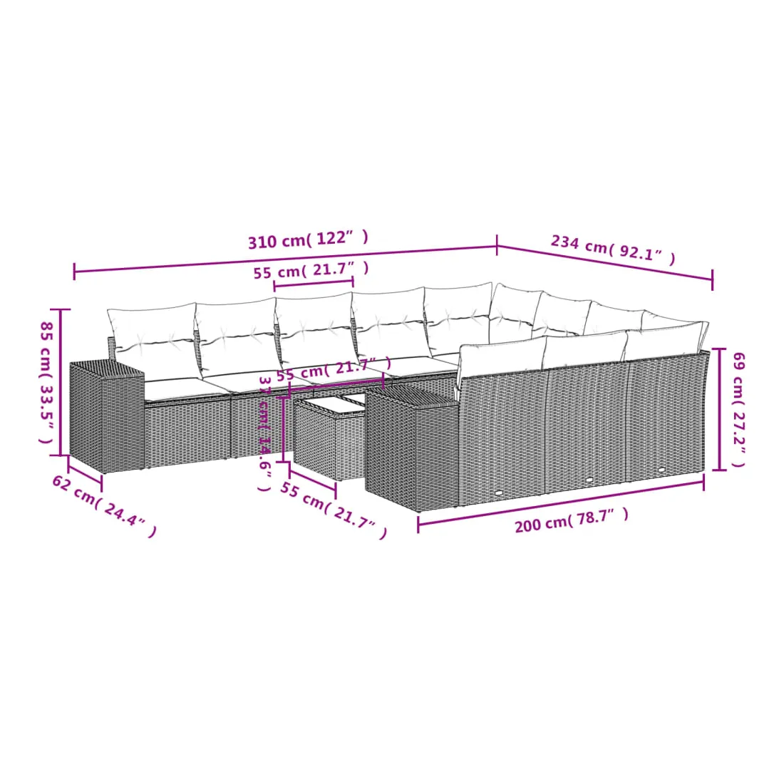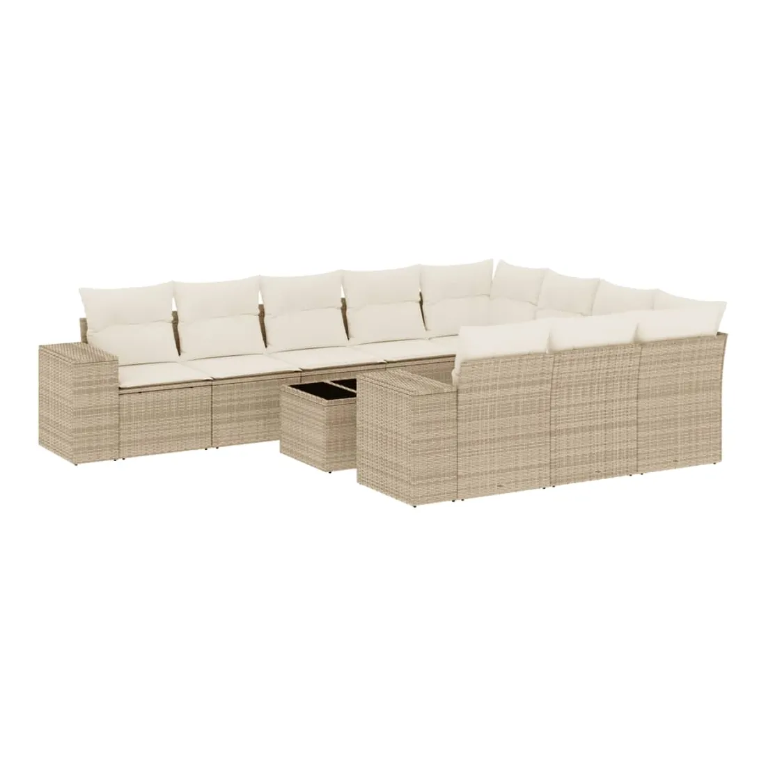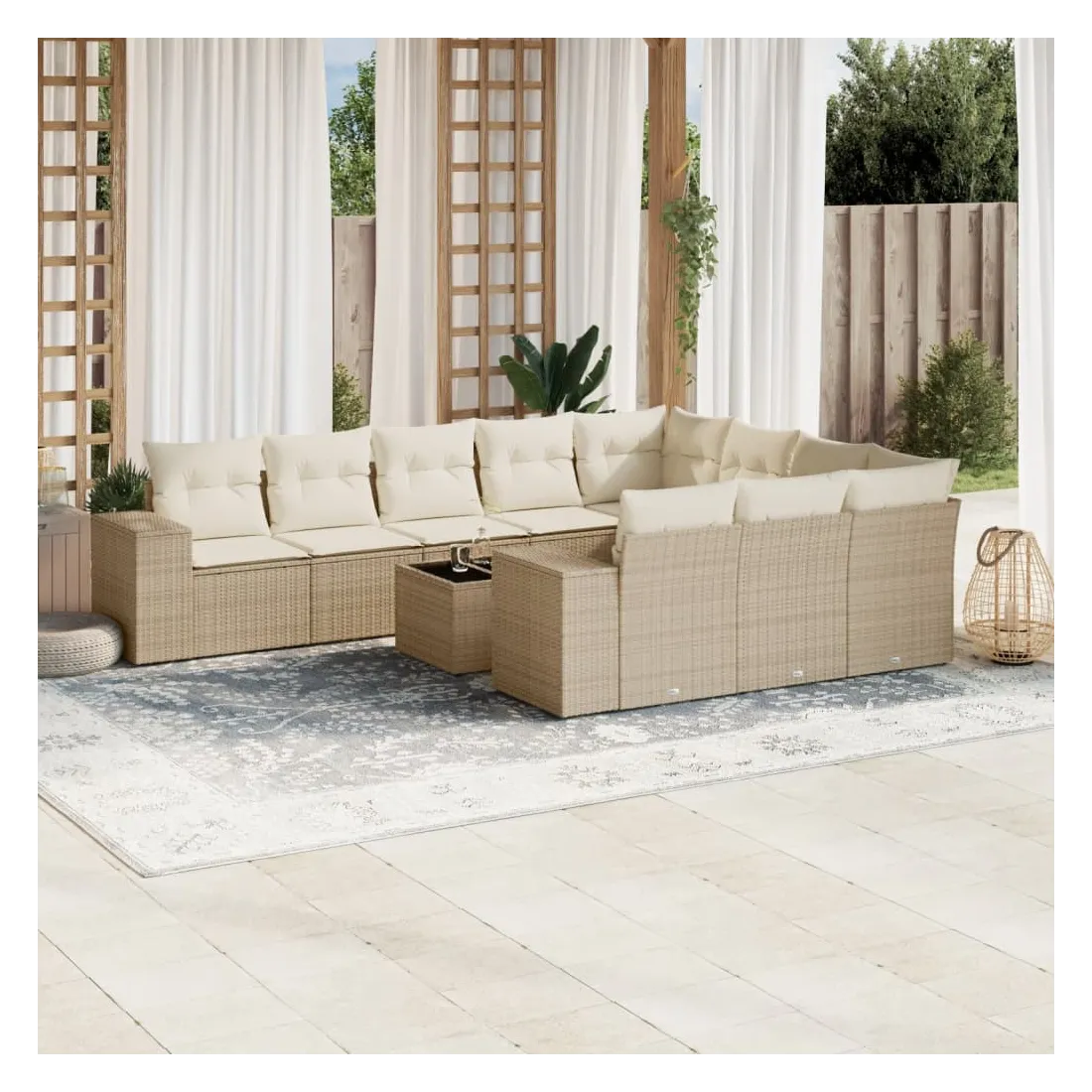 Salon de jardin 11 pcs avec coussins beige résine tressée