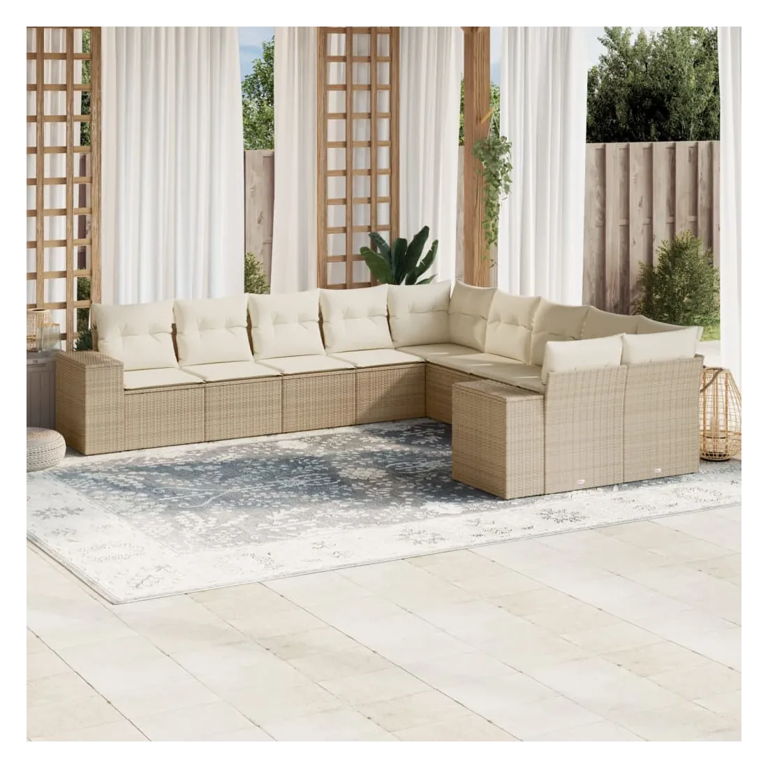 Cet ensemble de canapés de jardin est le complément parfait de votre arrière-cour, terrasse ou patio, offrant un espace confortable et accueillant pour discuter avec la famille et les amis ou simplement se détendre et profiter de l'extérieur. Matériau durable : la résine tressée, également connue sous le nom de poly rotin, est un matériau synthétique solide et nécessitant peu d'entretien qui ressemble au rotin naturel. Il est léger, facile à nettoyer et couramment utilisé pour les meubles d'extérieur en raison de sa durabilité et de ses propriétés de résistance aux intempéries.Fonction de rangement avec sac résistant à l'eau : le mobilier de jardin dispose d'un espace de rangement sous l'assise, complété par un sac résistant à l'eau pour ranger coussins, jouets et autres objets. Le sac intérieur peut être solidement fixé au mobilier d'extérieur grâce à des attaches auto-agrippantes pour plus de stabilité.Housse amovible et lavable : ces coussins de siège sont dotés de housses amovibles pour un lavage et un entretien faciles.Conception modulaire : cet ensemble de meubles d'extérieur a une conception modulaire, ce qui le rend complètement flexible et facile à déplacer, afin que vous puissiez créer un agencement de meubles d'extérieur personnalisé. Bon à savoir :Pour que vos meubles d'extérieur restent beaux, nous vous recommandons de les protéger avec une housse imperméable.