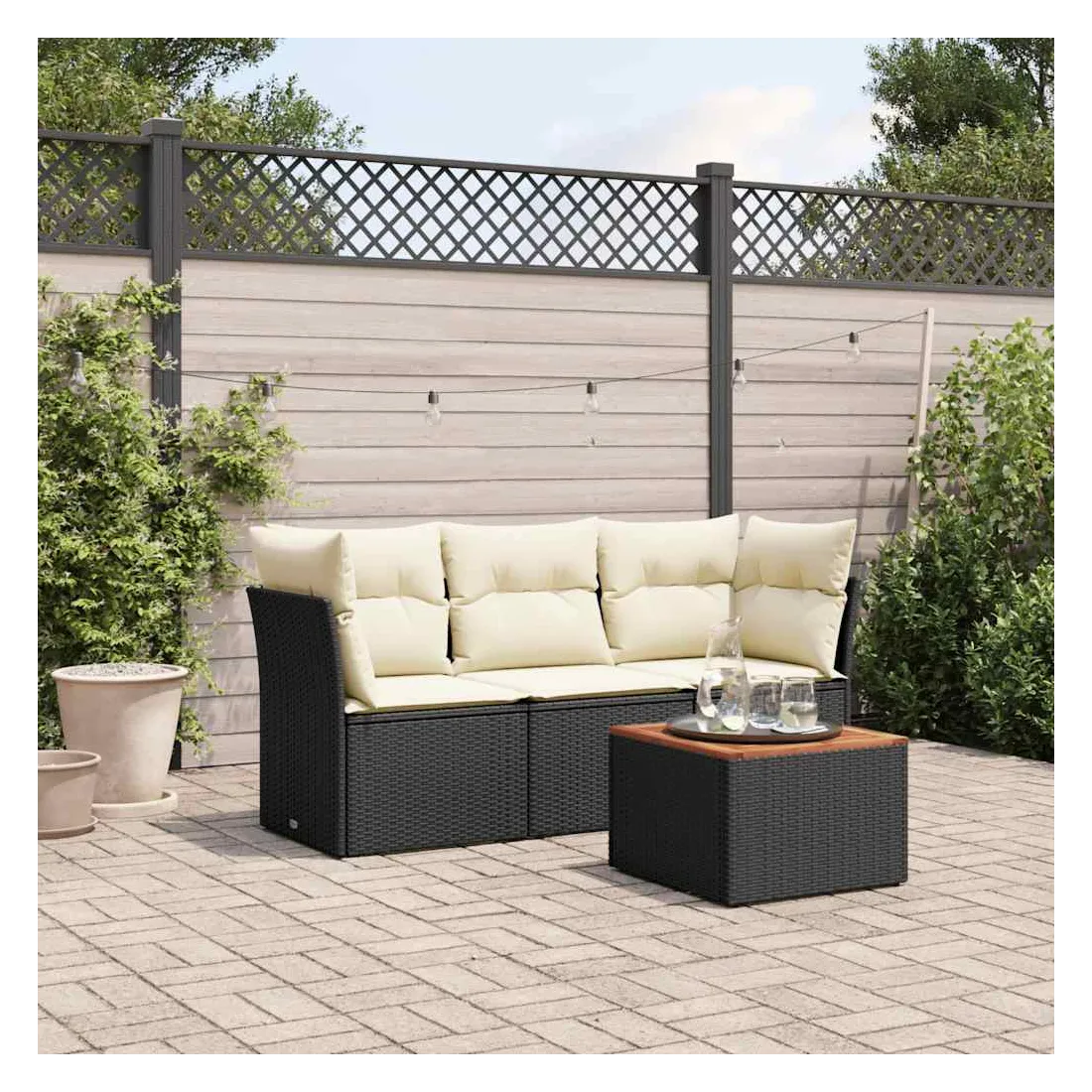 Cet ensemble de canapés de jardin est le complément parfait de votre arrière-cour, terrasse ou patio, offrant un espace confortable et accueillant pour discuter avec la famille et les amis ou simplement se détendre et profiter de l'extérieur. Matériau durable : la résine tressée, également connue sous le nom de poly rotin, est un matériau synthétique solide et nécessitant peu d'entretien qui ressemble au rotin naturel. Il est léger, facile à nettoyer et couramment utilisé pour les meubles d'extérieur en raison de sa durabilité et de ses propriétés de résistance aux intempéries.Fonction de rangement avec sac résistant à l'eau : chaque siège de jardin dispose d'un espace de rangement sous l'assise, complété par un sac résistant à l'eau pour ranger les coussins, les jouets et d'autres objets. Les sacs intérieurs sont dotés d'un couvercle et peuvent être solidement fixés aux sièges à l'aide de bandes auto-agrippantes pour plus de stabilité.Dessus stable et facile à nettoyer : cette table de jardin a un dessus en bois d'acacia robuste, durable et facile à nettoyer avec un chiffon humide.Housse amovible et lavable : ces coussins de siège sont dotés de housses amovibles pour un lavage et un entretien faciles.Conception modulaire : cet ensemble de meubles d'extérieur a une conception modulaire, ce qui le rend complètement flexible et facile à déplacer, afin que vous puissiez créer un agencement de meubles d'extérieur personnalisé. Bon à savoir :Pour que vos meubles d'extérieur restent beaux, nous vous recommandons de les protéger avec une housse imperméable.