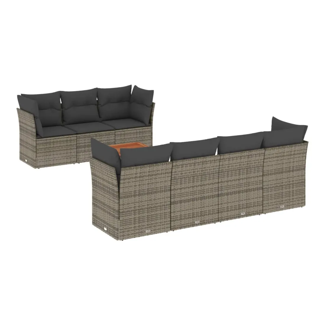 Cet ensemble de canapés de jardin est le complément parfait de votre arrière-cour, terrasse ou patio, offrant un espace confortable et accueillant pour discuter avec la famille et les amis ou simplement se détendre et profiter de l'extérieur. Matériau durable : la résine tressée, également connue sous le nom de poly rotin, est un matériau synthétique solide et nécessitant peu d'entretien qui ressemble au rotin naturel. Il est léger, facile à nettoyer et couramment utilisé pour les meubles d'extérieur en raison de sa durabilité et de ses propriétés de résistance aux intempéries.Fonction de rangement avec sac résistant à l'eau : chaque siège de jardin dispose d'un espace de rangement sous l'assise, complété par un sac résistant à l'eau pour ranger les coussins, les jouets et d'autres objets. Les sacs intérieurs sont dotés d'un couvercle et peuvent être solidement fixés aux sièges à l'aide de bandes auto-agrippantes pour plus de stabilité.Dessus stable et facile à nettoyer : cette table de jardin a un dessus en bois d'acacia robuste, durable et facile à nettoyer avec un chiffon humide.Housse amovible et lavable : ces coussins de siège sont dotés de housses amovibles pour un lavage et un entretien faciles.Conception modulaire : cet ensemble de meubles d'extérieur a une conception modulaire, ce qui le rend complètement flexible et facile à déplacer, afin que vous puissiez créer un agencement de meubles d'extérieur personnalisé. Bon à savoir :Pour que vos meubles d'extérieur restent beaux, nous vous recommandons de les protéger avec une housse imperméable.