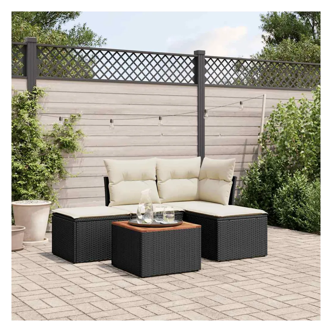 Cet ensemble de canapés de jardin est le complément parfait de votre arrière-cour, terrasse ou patio, offrant un espace confortable et accueillant pour discuter avec la famille et les amis ou simplement se détendre et profiter de l'extérieur. Matériau durable : la résine tressée, également connue sous le nom de poly rotin, est un matériau synthétique solide et nécessitant peu d'entretien qui ressemble au rotin naturel. Il est léger, facile à nettoyer et couramment utilisé pour les meubles d'extérieur en raison de sa durabilité et de ses propriétés de résistance aux intempéries.Fonction de rangement avec sac résistant à l'eau : chaque siège de jardin dispose d'un espace de rangement sous l'assise, complété par un sac résistant à l'eau pour ranger les coussins, les jouets et d'autres objets. Les sacs intérieurs sont dotés d'un couvercle et peuvent être solidement fixés aux sièges à l'aide de bandes auto-agrippantes pour plus de stabilité.Dessus stable et facile à nettoyer : cette table de jardin a un dessus en bois d'acacia robuste, durable et facile à nettoyer avec un chiffon humide.Pouf polyvalent : le tabouret est polyvalent, servant de repose-pieds confortable lorsque vous vous prélassez sur le canapé ou de siège supplémentaire dans votre jardin.Conception modulaire : cet ensemble de meubles d'extérieur a une conception modulaire, ce qui le rend complètement flexible et facile à déplacer, afin que vous puissiez créer un agencement de meubles d'extérieur personnalisé. Bon à savoir :Pour que vos meubles d'extérieur restent beaux, nous vous recommandons de les protéger avec une housse imperméable.