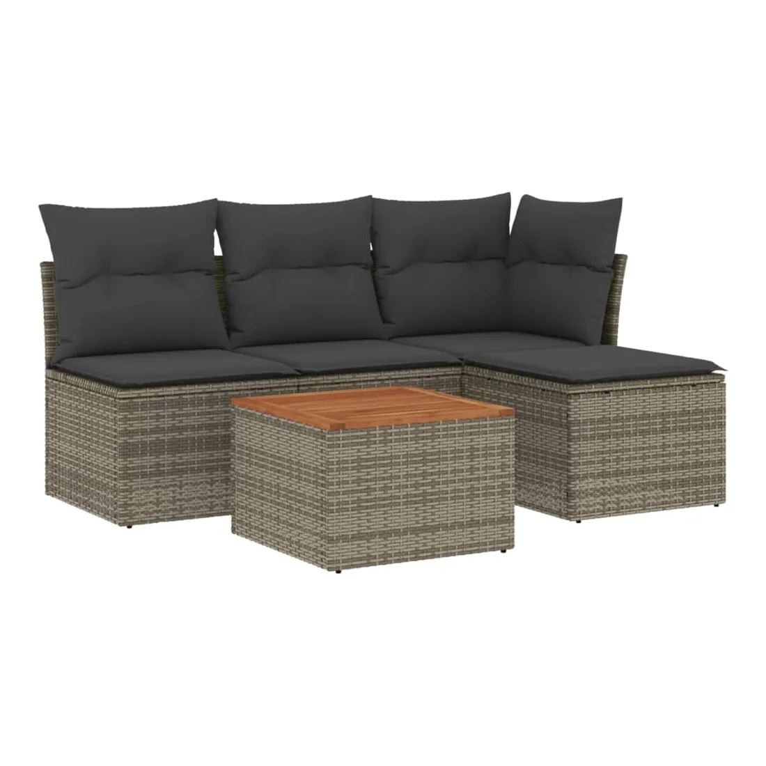 Cet ensemble de canapés de jardin est le complément parfait de votre arrière-cour, terrasse ou patio, offrant un espace confortable et accueillant pour discuter avec la famille et les amis ou simplement se détendre et profiter de l'extérieur. Matériau durable : la résine tressée, également connue sous le nom de poly rotin, est un matériau synthétique solide et nécessitant peu d'entretien qui ressemble au rotin naturel. Il est léger, facile à nettoyer et couramment utilisé pour les meubles d'extérieur en raison de sa durabilité et de ses propriétés de résistance aux intempéries.Fonction de rangement avec sac résistant à l'eau : chaque siège de jardin dispose d'un espace de rangement sous l'assise, complété par un sac résistant à l'eau pour ranger les coussins, les jouets et d'autres objets. Les sacs intérieurs sont dotés d'un couvercle et peuvent être solidement fixés aux sièges à l'aide de bandes auto-agrippantes pour plus de stabilité.Dessus stable et facile à nettoyer : cette table de jardin a un dessus en bois d'acacia robuste, durable et facile à nettoyer avec un chiffon humide.Pouf polyvalent : le tabouret est polyvalent, servant de repose-pieds confortable lorsque vous vous prélassez sur le canapé ou de siège supplémentaire dans votre jardin.Conception modulaire : cet ensemble de meubles d'extérieur a une conception modulaire, ce qui le rend complètement flexible et facile à déplacer, afin que vous puissiez créer un agencement de meubles d'extérieur personnalisé. Bon à savoir :Pour que vos meubles d'extérieur restent beaux, nous vous recommandons de les protéger avec une housse imperméable.