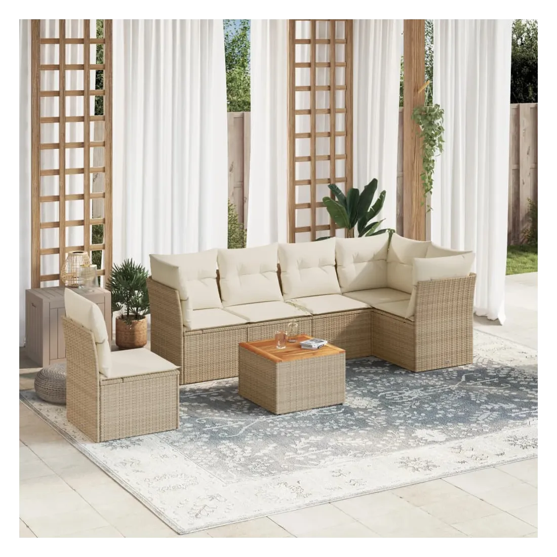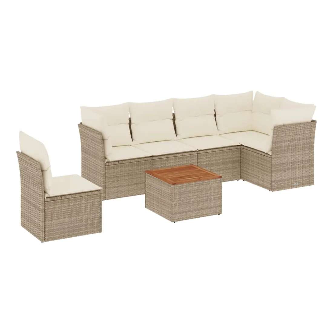 Salon de jardin avec coussins 7 pcs beige résine tressée