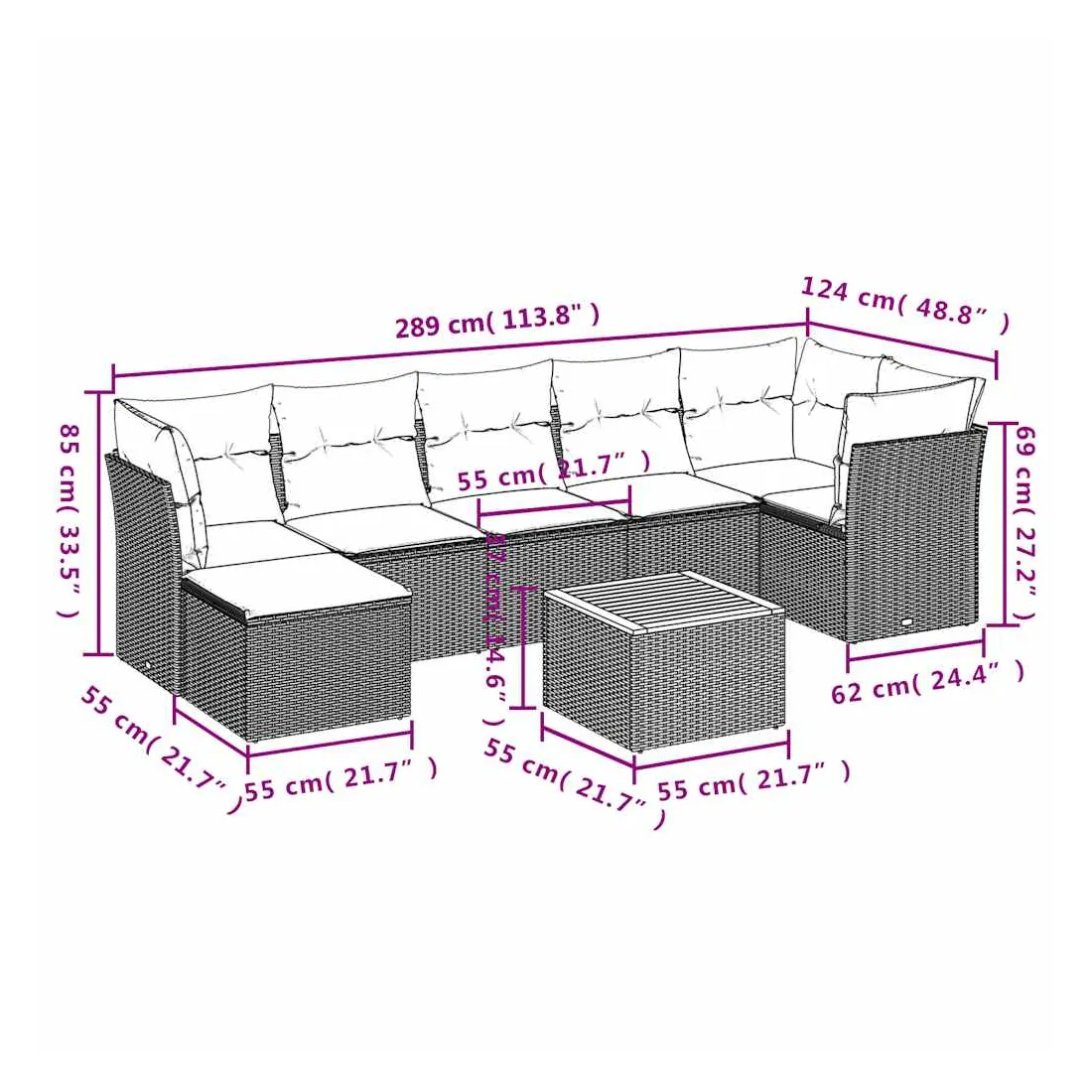 - 7 x coussin de siège avec housse amovible et lavable