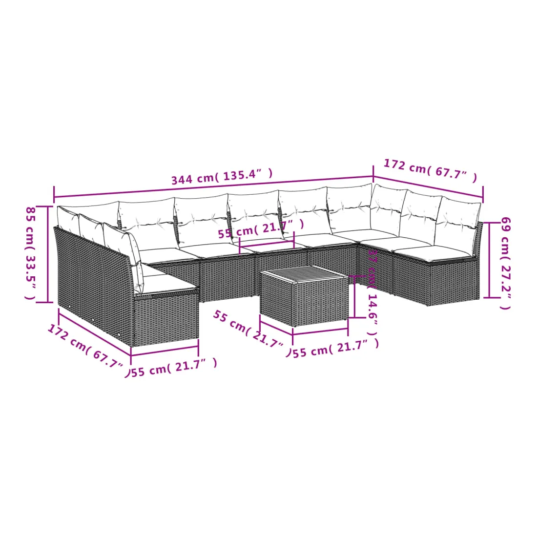 - Dimensions : 55 x 55 x 37 cm (L x l x H)
