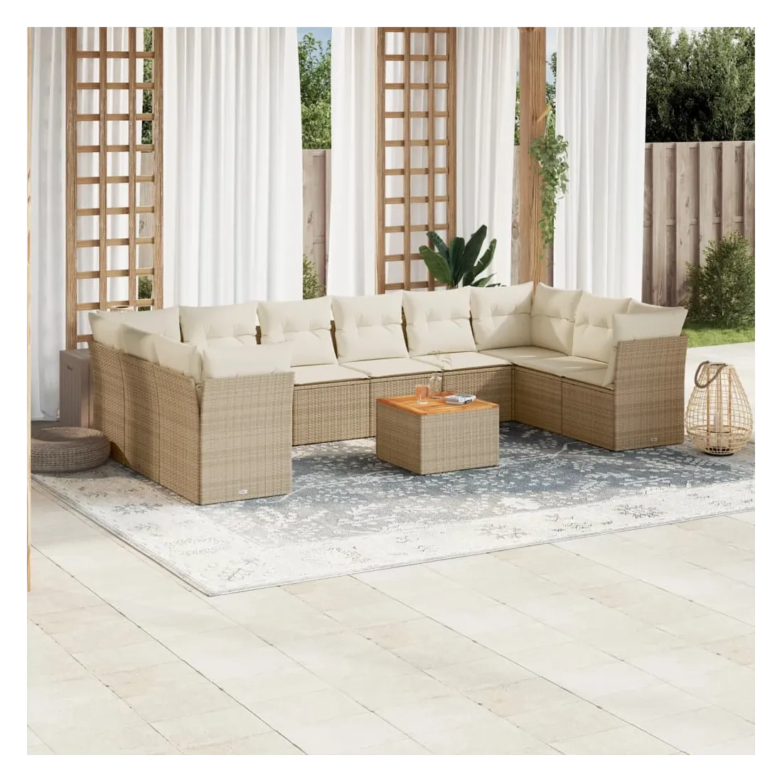 Cet ensemble de canapés de jardin est le complément parfait de votre arrière-cour, terrasse ou patio, offrant un espace confortable et accueillant pour discuter avec la famille et les amis ou simplement se détendre et profiter de l'extérieur. Matériau durable : la résine tressée, également connue sous le nom de poly rotin, est un matériau synthétique solide et nécessitant peu d'entretien qui ressemble au rotin naturel. Il est léger, facile à nettoyer et couramment utilisé pour les meubles d'extérieur en raison de sa durabilité et de ses propriétés de résistance aux intempéries.Fonction de rangement avec sac résistant à l'eau : chaque siège de jardin dispose d'un espace de rangement sous l'assise, complété par un sac résistant à l'eau pour ranger les coussins, les jouets et d'autres objets. Les sacs intérieurs sont dotés d'un couvercle et peuvent être solidement fixés aux sièges à l'aide de bandes auto-agrippantes pour plus de stabilité.Dessus stable et facile à nettoyer : cette table de jardin a un dessus en bois d'acacia robuste, durable et facile à nettoyer avec un chiffon humide.Housse amovible et lavable : ces coussins de siège sont dotés de housses amovibles pour un lavage et un entretien faciles.Conception modulaire : cet ensemble de meubles d'extérieur a une conception modulaire, ce qui le rend complètement flexible et facile à déplacer, afin que vous puissiez créer un agencement de meubles d'extérieur personnalisé. Bon à savoir :Pour que vos meubles d'extérieur restent beaux, nous vous recommandons de les protéger avec une housse imperméable.