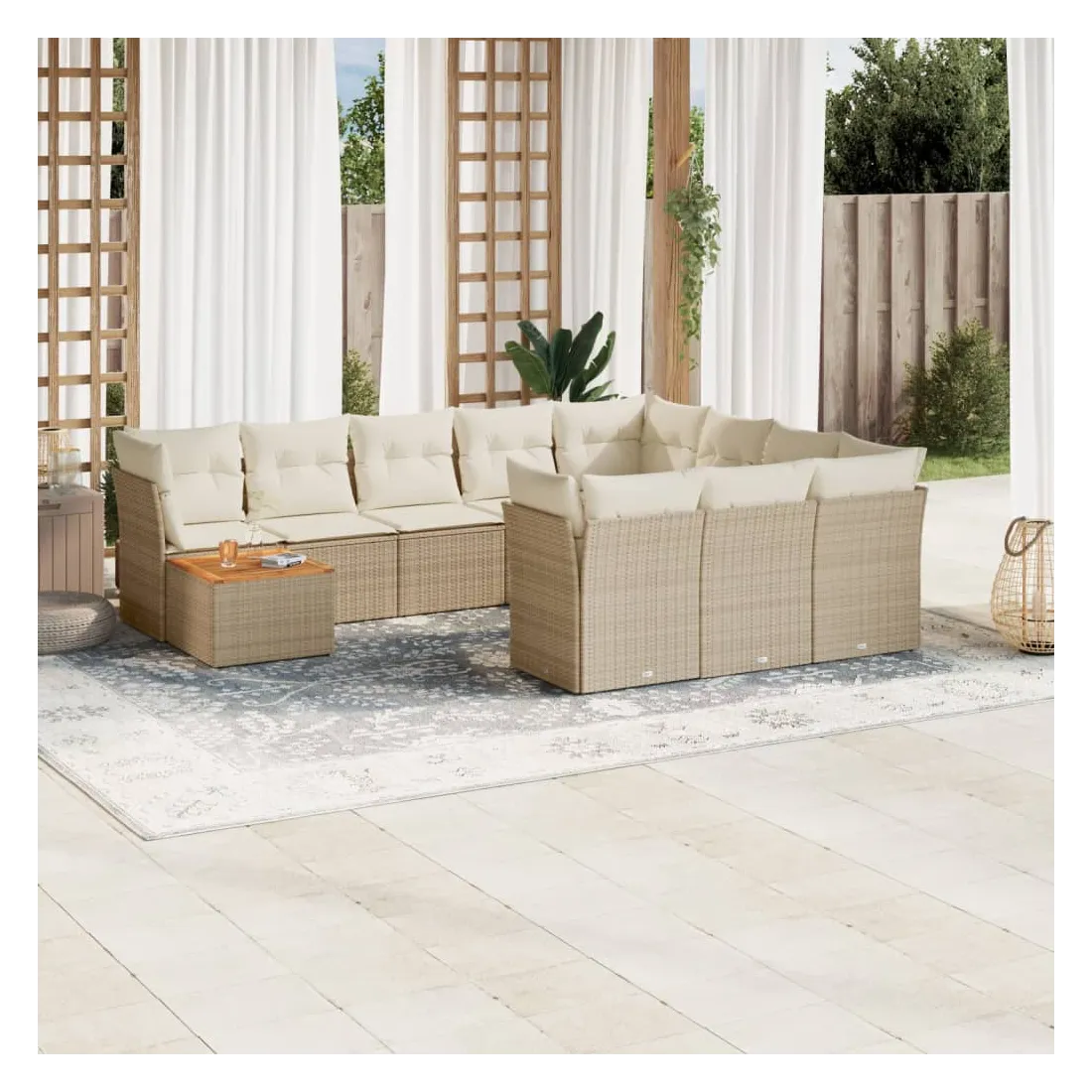 Salon de jardin 11 pcs avec coussins beige résine tressée