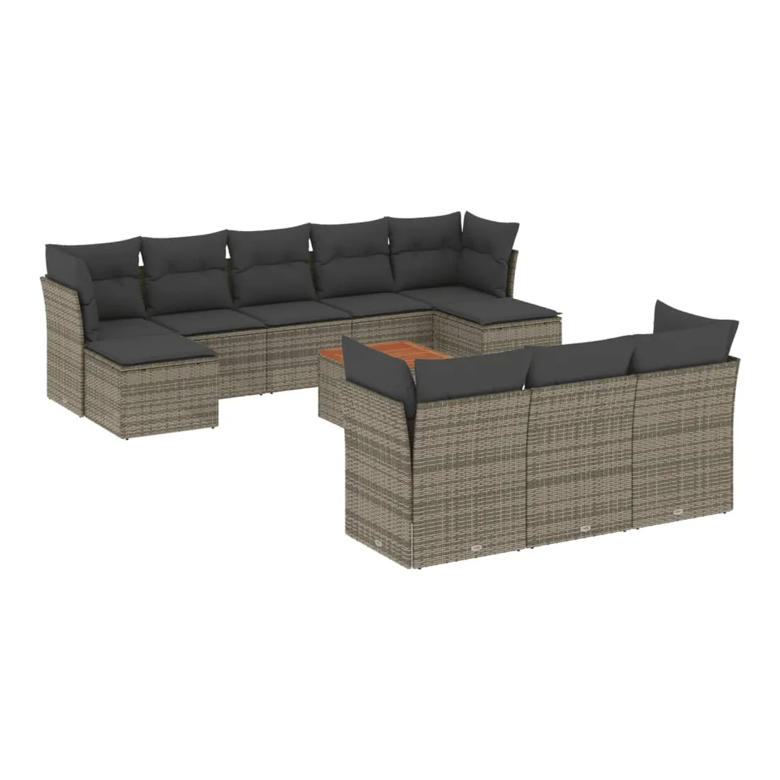 Cet ensemble de canapés de jardin est le complément parfait de votre arrière-cour, terrasse ou patio, offrant un espace confortable et accueillant pour discuter avec la famille et les amis ou simplement se détendre et profiter de l'extérieur. Matériau durable : la résine tressée, également connue sous le nom de poly rotin, est un matériau synthétique solide et nécessitant peu d'entretien qui ressemble au rotin naturel. Il est léger, facile à nettoyer et couramment utilisé pour les meubles d'extérieur en raison de sa durabilité et de ses propriétés de résistance aux intempéries.Fonction de rangement avec sac résistant à l'eau : chaque siège de jardin dispose d'un espace de rangement sous l'assise, complété par un sac résistant à l'eau pour ranger les coussins, les jouets et d'autres objets. Les sacs intérieurs sont dotés d'un couvercle et peuvent être solidement fixés aux sièges à l'aide de bandes auto-agrippantes pour plus de stabilité.Dessus stable et facile à nettoyer : cette table de jardin a un dessus en bois d'acacia robuste, durable et facile à nettoyer avec un chiffon humide.Pouf polyvalent : le tabouret est polyvalent, servant de repose-pieds confortable lorsque vous vous prélassez sur le canapé ou de siège supplémentaire dans votre jardin.Conception modulaire : cet ensemble de meubles d'extérieur a une conception modulaire, ce qui le rend complètement flexible et facile à déplacer, afin que vous puissiez créer un agencement de meubles d'extérieur personnalisé. Bon à savoir :Pour que vos meubles d'extérieur restent beaux, nous vous recommandons de les protéger avec une housse imperméable.
