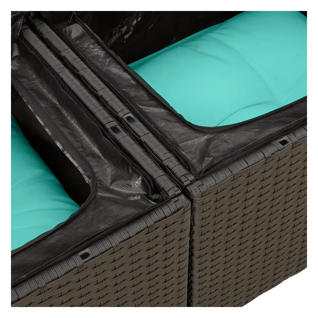 Cet ensemble de canapés de jardin est le complément parfait de votre arrière-cour, terrasse ou patio, offrant un espace confortable et accueillant pour discuter avec la famille et les amis ou simplement se détendre et profiter de l'extérieur. Matériau durable : la résine tressée, également connue sous le nom de poly rotin, est un matériau synthétique solide et nécessitant peu d'entretien qui ressemble au rotin naturel. Il est léger, facile à nettoyer et couramment utilisé pour les meubles d'extérieur en raison de sa durabilité et de ses propriétés de résistance aux intempéries.Fonction de rangement avec sac résistant à l'eau : chaque siège de jardin dispose d'un espace de rangement sous l'assise, complété par un sac résistant à l'eau pour ranger les coussins, les jouets et d'autres objets. Les sacs intérieurs sont dotés d'un couvercle et peuvent être solidement fixés aux sièges à l'aide de bandes auto-agrippantes pour plus de stabilité.Dessus stable et facile à nettoyer : cette table de jardin a un dessus en bois d'acacia robuste, durable et facile à nettoyer avec un chiffon humide.Housse amovible et lavable : ces coussins de siège sont dotés de housses amovibles pour un lavage et un entretien faciles.Conception modulaire : cet ensemble de meubles d'extérieur a une conception modulaire, ce qui le rend complètement flexible et facile à déplacer, afin que vous puissiez créer un agencement de meubles d'extérieur personnalisé. Bon à savoir :Pour que vos meubles d'extérieur restent beaux, nous vous recommandons de les protéger avec une housse imperméable.