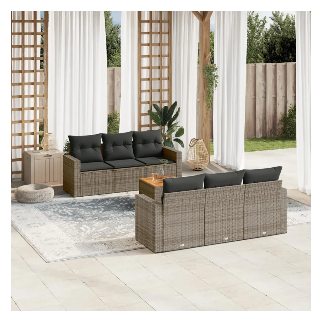 Cet ensemble de canapés de jardin est le complément parfait de votre arrière-cour, terrasse ou patio, offrant un espace confortable et accueillant pour discuter avec la famille et les amis ou simplement se détendre et profiter de l'extérieur. Matériau durable : la résine tressée, également connue sous le nom de poly rotin, est un matériau synthétique solide et nécessitant peu d'entretien qui ressemble au rotin naturel. Il est léger, facile à nettoyer et couramment utilisé pour les meubles d'extérieur en raison de sa durabilité et de ses propriétés de résistance aux intempéries.Fonction de rangement avec sac résistant à l'eau : chaque siège de jardin dispose d'un espace de rangement sous l'assise, complété par un sac résistant à l'eau pour ranger les coussins, les jouets et d'autres objets. Les sacs intérieurs sont dotés d'un couvercle et peuvent être solidement fixés aux sièges à l'aide de bandes auto-agrippantes pour plus de stabilité.Dessus stable et facile à nettoyer : cette table de jardin a un dessus en bois d'acacia robuste, durable et facile à nettoyer avec un chiffon humide.Housse amovible et lavable : ces coussins de siège sont dotés de housses amovibles pour un lavage et un entretien faciles.Conception modulaire : cet ensemble de meubles d'extérieur a une conception modulaire, ce qui le rend complètement flexible et facile à déplacer, afin que vous puissiez créer un agencement de meubles d'extérieur personnalisé. Bon à savoir :Pour que vos meubles d'extérieur restent beaux, nous vous recommandons de les protéger avec une housse imperméable.