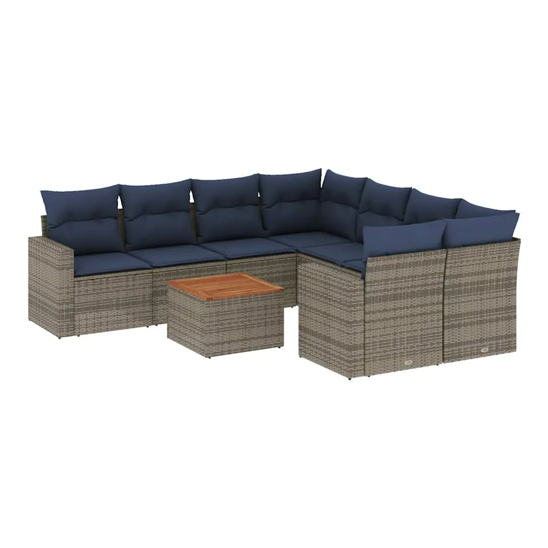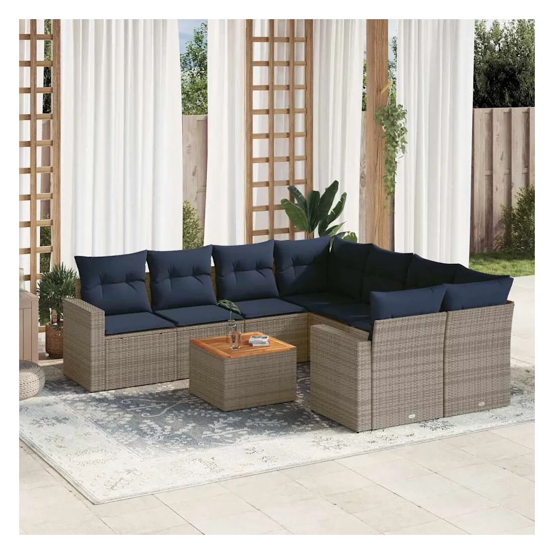 Cet ensemble de canapés de jardin est le complément parfait de votre arrière-cour, terrasse ou patio, offrant un espace confortable et accueillant pour discuter avec la famille et les amis ou simplement se détendre et profiter de l'extérieur. Matériau durable : la résine tressée, également connue sous le nom de poly rotin, est un matériau synthétique solide et nécessitant peu d'entretien qui ressemble au rotin naturel. Il est léger, facile à nettoyer et couramment utilisé pour les meubles d'extérieur en raison de sa durabilité et de ses propriétés de résistance aux intempéries.Fonction de rangement avec sac résistant à l'eau : chaque siège de jardin dispose d'un espace de rangement sous l'assise, complété par un sac résistant à l'eau pour ranger les coussins, les jouets et d'autres objets. Les sacs intérieurs sont dotés d'un couvercle et peuvent être solidement fixés aux sièges à l'aide de bandes auto-agrippantes pour plus de stabilité.Dessus stable et facile à nettoyer : cette table de jardin a un dessus en bois d'acacia robuste, durable et facile à nettoyer avec un chiffon humide.Housse amovible et lavable : ces coussins de siège sont dotés de housses amovibles pour un lavage et un entretien faciles.Conception modulaire : cet ensemble de meubles d'extérieur a une conception modulaire, ce qui le rend complètement flexible et facile à déplacer, afin que vous puissiez créer un agencement de meubles d'extérieur personnalisé. Bon à savoir :Pour que vos meubles d'extérieur restent beaux, nous vous recommandons de les protéger avec une housse imperméable.