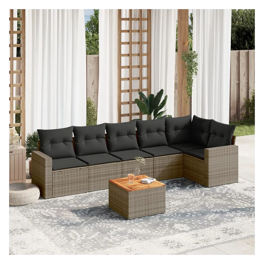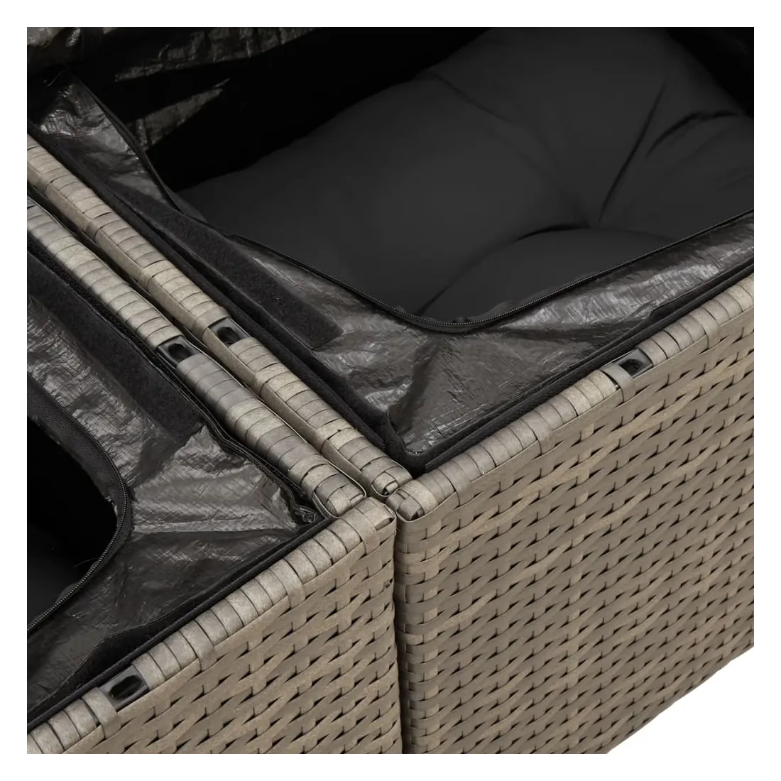 Cet ensemble de canapés de jardin est le complément parfait de votre arrière-cour, terrasse ou patio, offrant un espace confortable et accueillant pour discuter avec la famille et les amis ou simplement se détendre et profiter de l'extérieur. Matériau durable : la résine tressée, également connue sous le nom de poly rotin, est un matériau synthétique solide et nécessitant peu d'entretien qui ressemble au rotin naturel. Il est léger, facile à nettoyer et couramment utilisé pour les meubles d'extérieur en raison de sa durabilité et de ses propriétés de résistance aux intempéries.Fonction de rangement avec sac résistant à l'eau : chaque siège de jardin dispose d'un espace de rangement sous l'assise, complété par un sac résistant à l'eau pour ranger les coussins, les jouets et d'autres objets. Les sacs intérieurs sont dotés d'un couvercle et peuvent être solidement fixés aux sièges à l'aide de bandes auto-agrippantes pour plus de stabilité.Dessus stable et facile à nettoyer : cette table de jardin a un dessus en bois d'acacia robuste, durable et facile à nettoyer avec un chiffon humide.Housse amovible et lavable : ces coussins de siège sont dotés de housses amovibles pour un lavage et un entretien faciles.Conception modulaire : cet ensemble de meubles d'extérieur a une conception modulaire, ce qui le rend complètement flexible et facile à déplacer, afin que vous puissiez créer un agencement de meubles d'extérieur personnalisé. Bon à savoir :Pour que vos meubles d'extérieur restent beaux, nous vous recommandons de les protéger avec une housse imperméable.