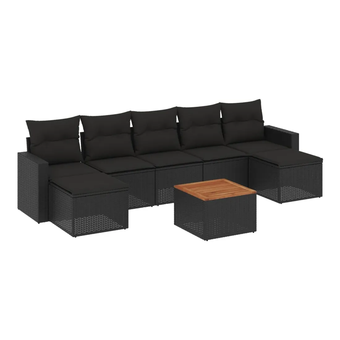 Cet ensemble de canapés de jardin est le complément parfait de votre arrière-cour, terrasse ou patio, offrant un espace confortable et accueillant pour discuter avec la famille et les amis ou simplement se détendre et profiter de l'extérieur. Matériau durable : la résine tressée, également connue sous le nom de poly rotin, est un matériau synthétique solide et nécessitant peu d'entretien qui ressemble au rotin naturel. Il est léger, facile à nettoyer et couramment utilisé pour les meubles d'extérieur en raison de sa durabilité et de ses propriétés de résistance aux intempéries.Fonction de rangement avec sac résistant à l'eau : chaque siège de jardin dispose d'un espace de rangement sous l'assise, complété par un sac résistant à l'eau pour ranger les coussins, les jouets et d'autres objets. Les sacs intérieurs sont dotés d'un couvercle et peuvent être solidement fixés aux sièges à l'aide de bandes auto-agrippantes pour plus de stabilité.Dessus stable et facile à nettoyer : cette table de jardin a un dessus en bois d'acacia robuste, durable et facile à nettoyer avec un chiffon humide.Pouf polyvalent : le tabouret est polyvalent, servant de repose-pieds confortable lorsque vous vous prélassez sur le canapé ou de siège supplémentaire dans votre jardin.Conception modulaire : cet ensemble de meubles d'extérieur a une conception modulaire, ce qui le rend complètement flexible et facile à déplacer, afin que vous puissiez créer un agencement de meubles d'extérieur personnalisé. Bon à savoir :Pour que vos meubles d'extérieur restent beaux, nous vous recommandons de les protéger avec une housse imperméable.