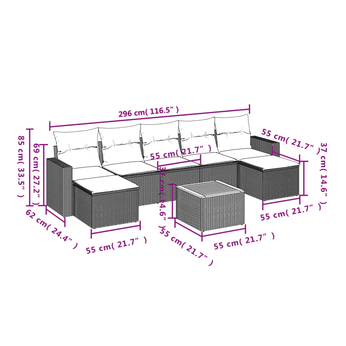 - Dimensions : 55 x 55 x 37 cm (L x l x H)