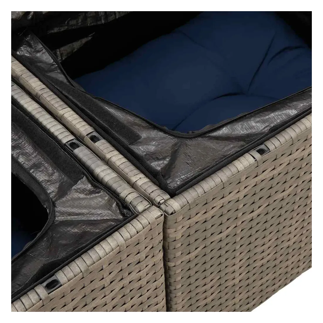 Cet ensemble de canapés de jardin est le complément parfait de votre arrière-cour, terrasse ou patio, offrant un espace confortable et accueillant pour discuter avec la famille et les amis ou simplement se détendre et profiter de l'extérieur. Matériau durable : la résine tressée, également connue sous le nom de poly rotin, est un matériau synthétique solide et nécessitant peu d'entretien qui ressemble au rotin naturel. Il est léger, facile à nettoyer et couramment utilisé pour les meubles d'extérieur en raison de sa durabilité et de ses propriétés de résistance aux intempéries.Fonction de rangement avec sac résistant à l'eau : chaque siège de jardin dispose d'un espace de rangement sous l'assise, complété par un sac résistant à l'eau pour ranger les coussins, les jouets et d'autres objets. Les sacs intérieurs sont dotés d'un couvercle et peuvent être solidement fixés aux sièges à l'aide de bandes auto-agrippantes pour plus de stabilité.Dessus stable et facile à nettoyer : cette table de jardin a un dessus en bois d'acacia robuste, durable et facile à nettoyer avec un chiffon humide.Housse amovible et lavable : ces coussins de siège sont dotés de housses amovibles pour un lavage et un entretien faciles.Conception modulaire : cet ensemble de meubles d'extérieur a une conception modulaire, ce qui le rend complètement flexible et facile à déplacer, afin que vous puissiez créer un agencement de meubles d'extérieur personnalisé. Bon à savoir :Pour que vos meubles d'extérieur restent beaux, nous vous recommandons de les protéger avec une housse imperméable.