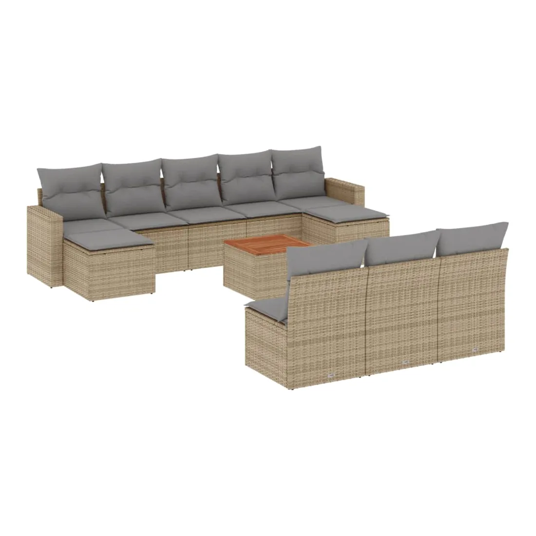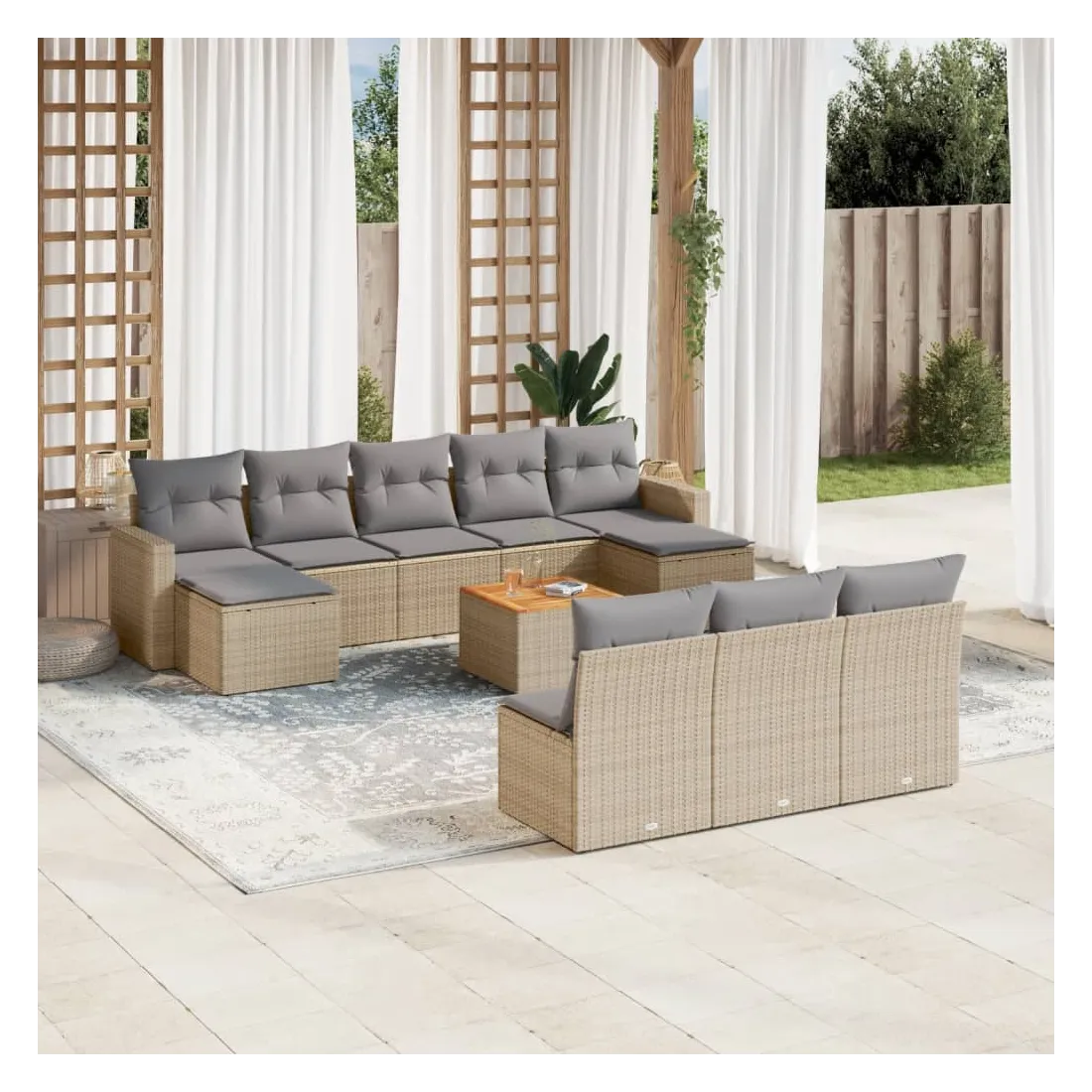 Cet ensemble de canapés de jardin est le complément parfait de votre arrière-cour, terrasse ou patio, offrant un espace confortable et accueillant pour discuter avec la famille et les amis ou simplement se détendre et profiter de l'extérieur. Matériau durable : la résine tressée, également connue sous le nom de poly rotin, est un matériau synthétique solide et nécessitant peu d'entretien qui ressemble au rotin naturel. Il est léger, facile à nettoyer et couramment utilisé pour les meubles d'extérieur en raison de sa durabilité et de ses propriétés de résistance aux intempéries.Fonction de rangement avec sac résistant à l'eau : chaque siège de jardin dispose d'un espace de rangement sous l'assise, complété par un sac résistant à l'eau pour ranger les coussins, les jouets et d'autres objets. Les sacs intérieurs sont dotés d'un couvercle et peuvent être solidement fixés aux sièges à l'aide de bandes auto-agrippantes pour plus de stabilité.Dessus stable et facile à nettoyer : cette table de jardin a un dessus en bois d'acacia robuste, durable et facile à nettoyer avec un chiffon humide.Pouf polyvalent : le tabouret est polyvalent, servant de repose-pieds confortable lorsque vous vous prélassez sur le canapé ou de siège supplémentaire dans votre jardin.Conception modulaire : cet ensemble de meubles d'extérieur a une conception modulaire, ce qui le rend complètement flexible et facile à déplacer, afin que vous puissiez créer un agencement de meubles d'extérieur personnalisé. Bon à savoir :Pour que vos meubles d'extérieur restent beaux, nous vous recommandons de les protéger avec une housse imperméable.