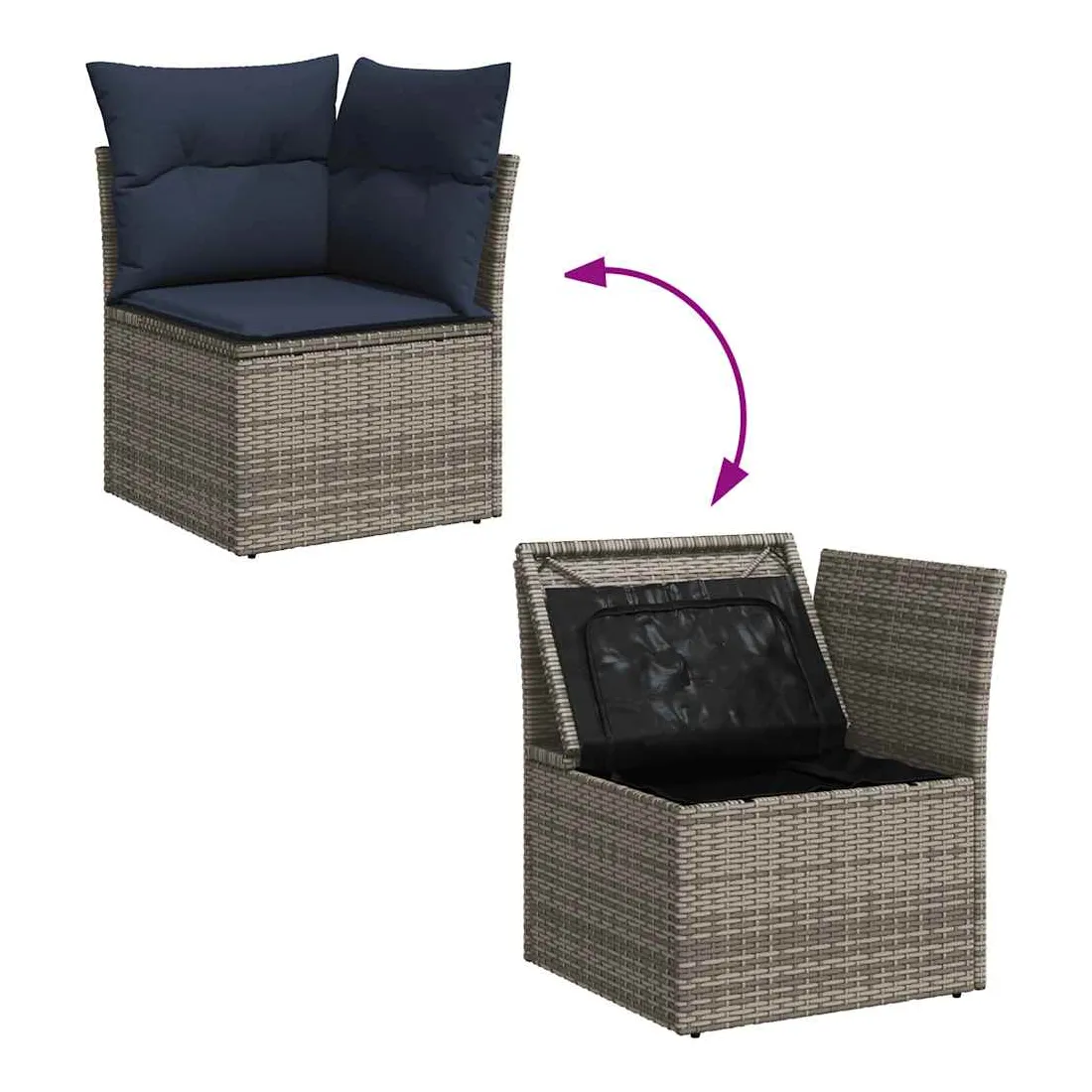 Cet ensemble de canapés de jardin est le complément parfait de votre arrière-cour, terrasse ou patio, offrant un espace confortable et accueillant pour discuter avec la famille et les amis ou simplement se détendre et profiter de l'extérieur. Matériau durable : la résine tressée, également connue sous le nom de poly rotin, est un matériau synthétique solide et nécessitant peu d'entretien qui ressemble au rotin naturel. Il est léger, facile à nettoyer et couramment utilisé pour les meubles d'extérieur en raison de sa durabilité et de ses propriétés de résistance aux intempéries.Fonction de rangement avec sac résistant à l'eau : chaque siège de jardin dispose d'un espace de rangement sous l'assise, complété par un sac résistant à l'eau pour ranger les coussins, les jouets et d'autres objets. Les sacs intérieurs sont dotés d'un couvercle et peuvent être solidement fixés aux sièges à l'aide de bandes auto-agrippantes pour plus de stabilité.Dessus stable et facile à nettoyer : cette table de jardin a un dessus en bois d'acacia robuste, durable et facile à nettoyer avec un chiffon humide.Housse amovible et lavable : ces coussins de siège sont dotés de housses amovibles pour un lavage et un entretien faciles.Conception modulaire : cet ensemble de meubles d'extérieur a une conception modulaire, ce qui le rend complètement flexible et facile à déplacer, afin que vous puissiez créer un agencement de meubles d'extérieur personnalisé. Bon à savoir :Pour que vos meubles d'extérieur restent beaux, nous vous recommandons de les protéger avec une housse imperméable.