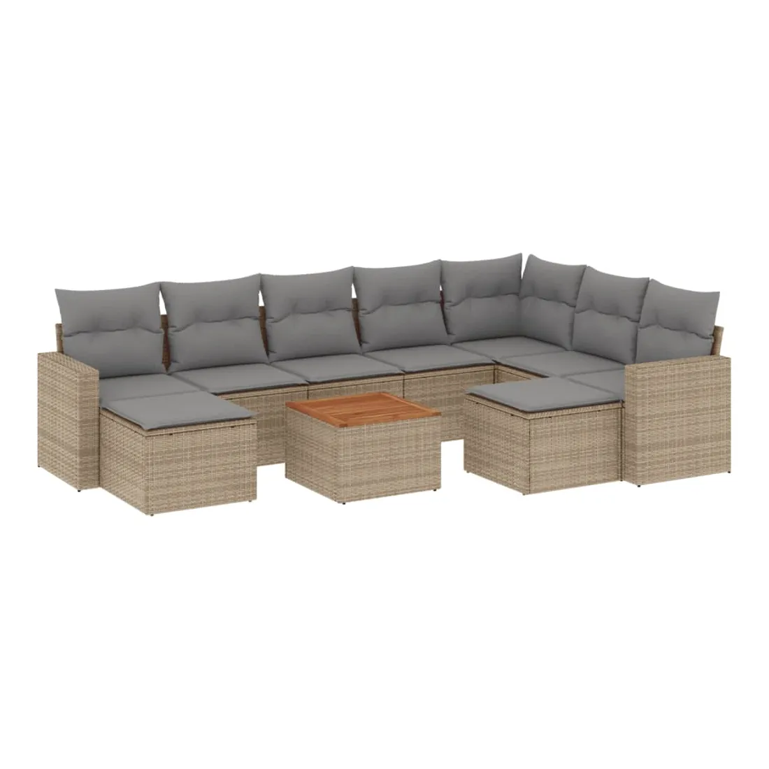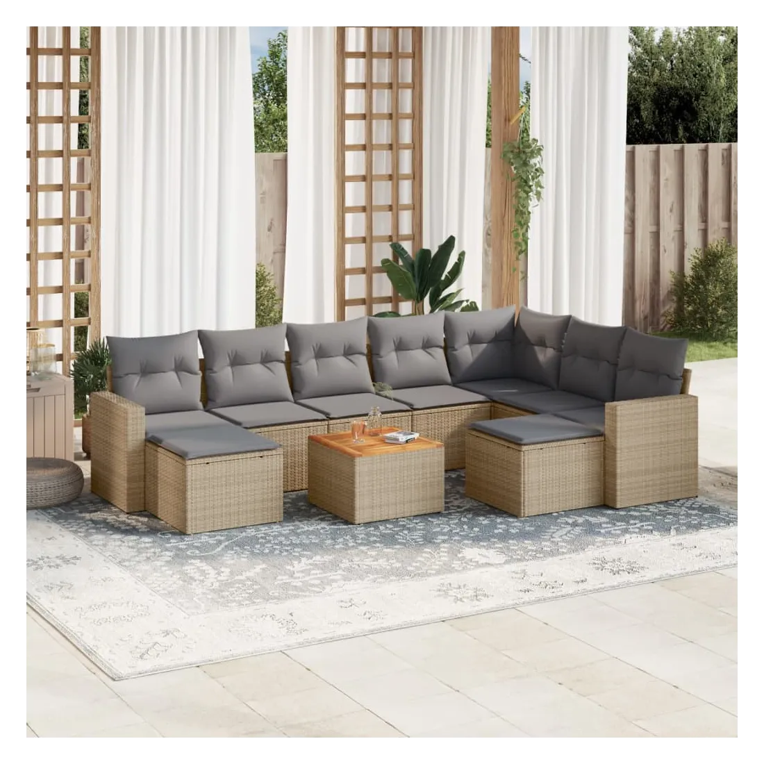 Cet ensemble de canapés de jardin est le complément parfait de votre arrière-cour, terrasse ou patio, offrant un espace confortable et accueillant pour discuter avec la famille et les amis ou simplement se détendre et profiter de l'extérieur. Matériau durable : la résine tressée, également connue sous le nom de poly rotin, est un matériau synthétique solide et nécessitant peu d'entretien qui ressemble au rotin naturel. Il est léger, facile à nettoyer et couramment utilisé pour les meubles d'extérieur en raison de sa durabilité et de ses propriétés de résistance aux intempéries.Fonction de rangement avec sac résistant à l'eau : chaque siège de jardin dispose d'un espace de rangement sous l'assise, complété par un sac résistant à l'eau pour ranger les coussins, les jouets et d'autres objets. Les sacs intérieurs sont dotés d'un couvercle et peuvent être solidement fixés aux sièges à l'aide de bandes auto-agrippantes pour plus de stabilité.Dessus stable et facile à nettoyer : cette table de jardin a un dessus en bois d'acacia robuste, durable et facile à nettoyer avec un chiffon humide.Pouf polyvalent : le tabouret est polyvalent, servant de repose-pieds confortable lorsque vous vous prélassez sur le canapé ou de siège supplémentaire dans votre jardin.Conception modulaire : cet ensemble de meubles d'extérieur a une conception modulaire, ce qui le rend complètement flexible et facile à déplacer, afin que vous puissiez créer un agencement de meubles d'extérieur personnalisé. Bon à savoir :Pour que vos meubles d'extérieur restent beaux, nous vous recommandons de les protéger avec une housse imperméable.