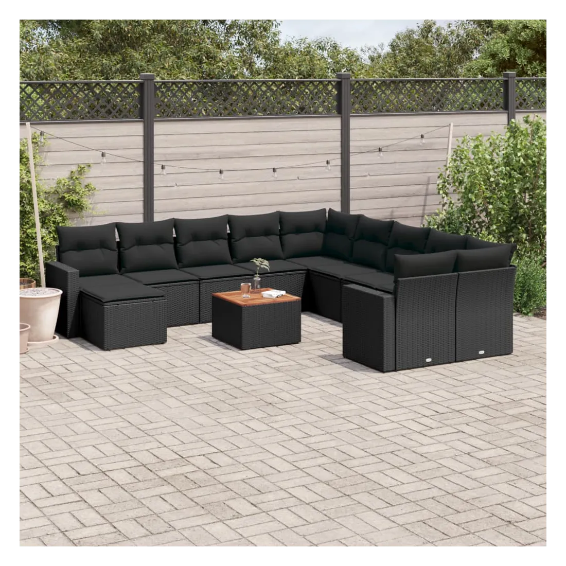 Cet ensemble de canapés de jardin est le complément parfait de votre arrière-cour, terrasse ou patio, offrant un espace confortable et accueillant pour discuter avec la famille et les amis ou simplement se détendre et profiter de l'extérieur. Matériau durable : la résine tressée, également connue sous le nom de poly rotin, est un matériau synthétique solide et nécessitant peu d'entretien qui ressemble au rotin naturel. Il est léger, facile à nettoyer et couramment utilisé pour les meubles d'extérieur en raison de sa durabilité et de ses propriétés de résistance aux intempéries.Fonction de rangement avec sac résistant à l'eau : chaque siège de jardin dispose d'un espace de rangement sous l'assise, complété par un sac résistant à l'eau pour ranger les coussins, les jouets et d'autres objets. Les sacs intérieurs sont dotés d'un couvercle et peuvent être solidement fixés aux sièges à l'aide de bandes auto-agrippantes pour plus de stabilité.Dessus stable et facile à nettoyer : cette table de jardin a un dessus en bois d'acacia robuste, durable et facile à nettoyer avec un chiffon humide.Pouf polyvalent : le tabouret est polyvalent, servant de repose-pieds confortable lorsque vous vous prélassez sur le canapé ou de siège supplémentaire dans votre jardin.Conception modulaire : cet ensemble de meubles d'extérieur a une conception modulaire, ce qui le rend complètement flexible et facile à déplacer, afin que vous puissiez créer un agencement de meubles d'extérieur personnalisé. Bon à savoir :Pour que vos meubles d'extérieur restent beaux, nous vous recommandons de les protéger avec une housse imperméable.