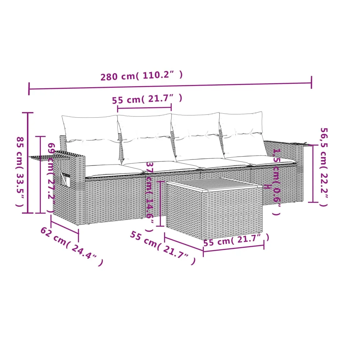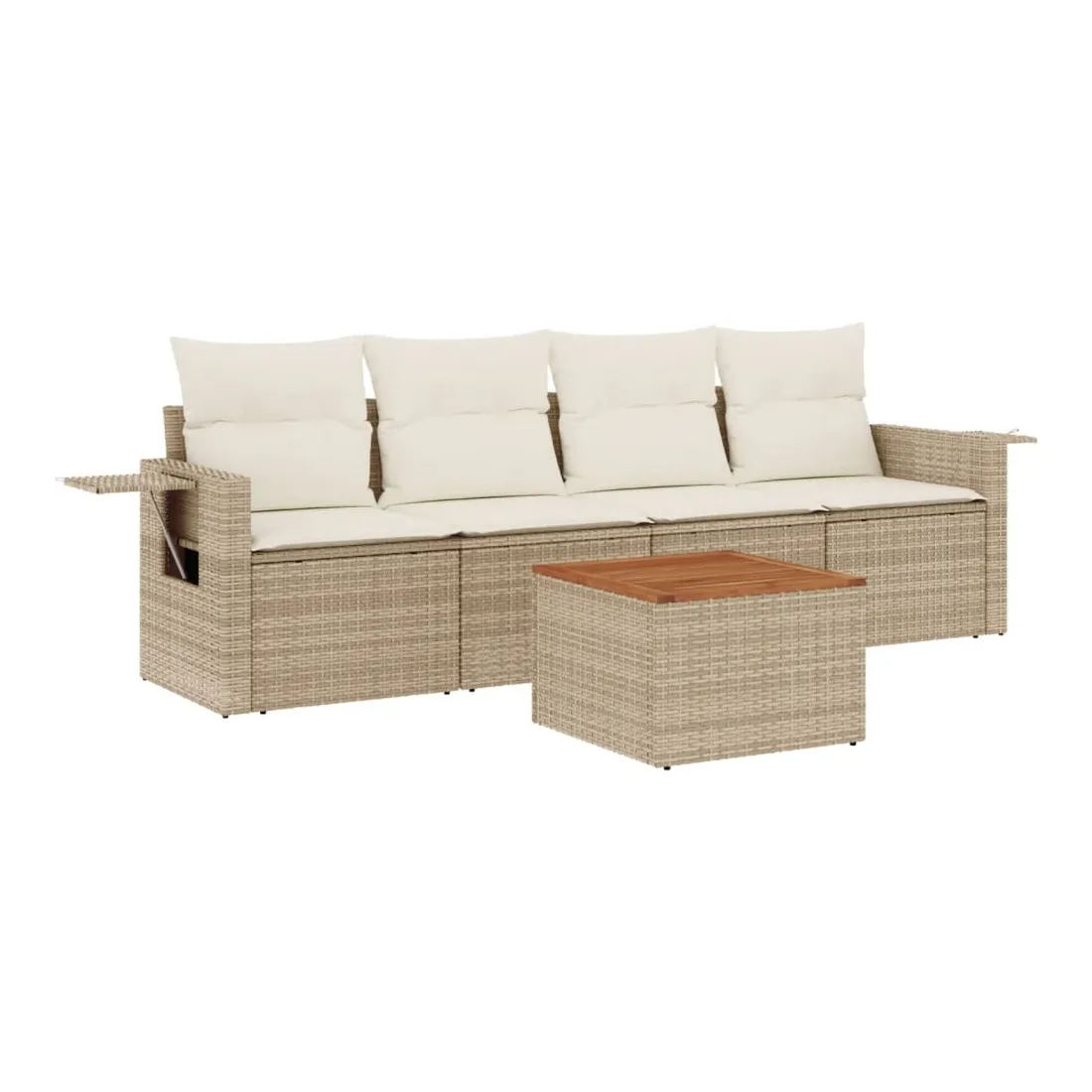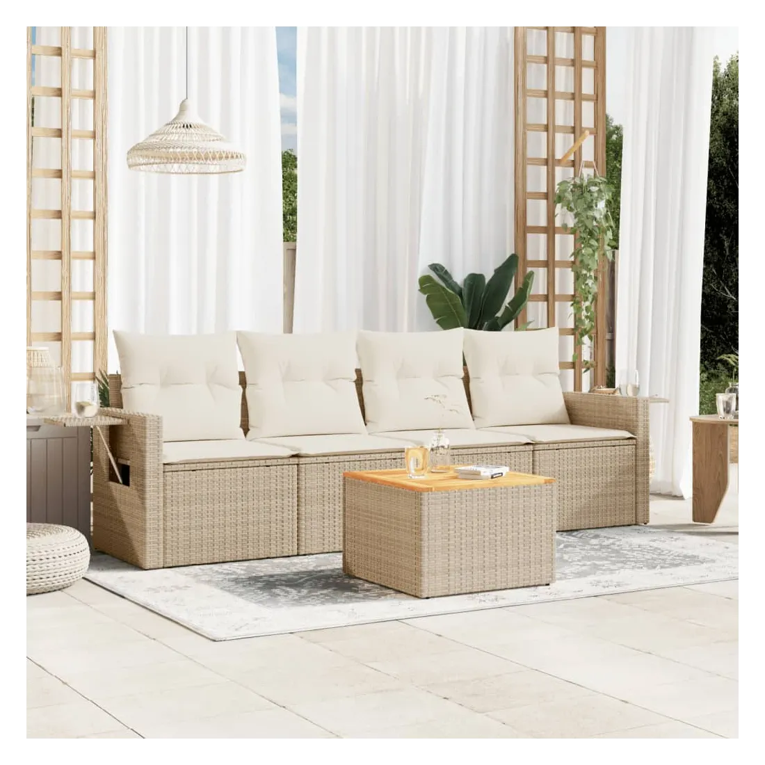 Cet ensemble de canapés de jardin est le complément parfait de votre arrière-cour, terrasse ou patio, offrant un espace confortable et accueillant pour discuter avec la famille et les amis ou simplement se détendre et profiter de l'extérieur. Matériau durable : la résine tressée, également connue sous le nom de poly rotin, est un matériau synthétique solide et nécessitant peu d'entretien qui ressemble au rotin naturel. Il est léger, facile à nettoyer et couramment utilisé pour les meubles d'extérieur en raison de sa durabilité et de ses propriétés de résistance aux intempéries.Fonction de rangement avec sac résistant à l'eau : chaque siège de jardin dispose d'un espace de rangement sous l'assise, complété par un sac résistant à l'eau pour ranger les coussins, les jouets et d'autres objets. Les sacs intérieurs sont dotés d'un couvercle et peuvent être solidement fixés aux sièges à l'aide de bandes auto-agrippantes pour plus de stabilité.Dessus stable et facile à nettoyer : cette table de jardin a un dessus en bois d'acacia robuste, durable et facile à nettoyer avec un chiffon humide.Table d'appoint pratique : ce mobilier d'extérieur comprend des tables d'appoint pliables avec un ressort à gaz sur les accoudoirs, offrant des endroits pratiques pour garder vos essentiels à portée de main.Conception modulaire : cet ensemble de meubles d'extérieur a une conception modulaire, ce qui le rend complètement flexible et facile à déplacer, afin que vous puissiez créer un agencement de meubles d'extérieur personnalisé. Bon à savoir :Pour que vos meubles d'extérieur restent beaux, nous vous recommandons de les protéger avec une housse imperméable.