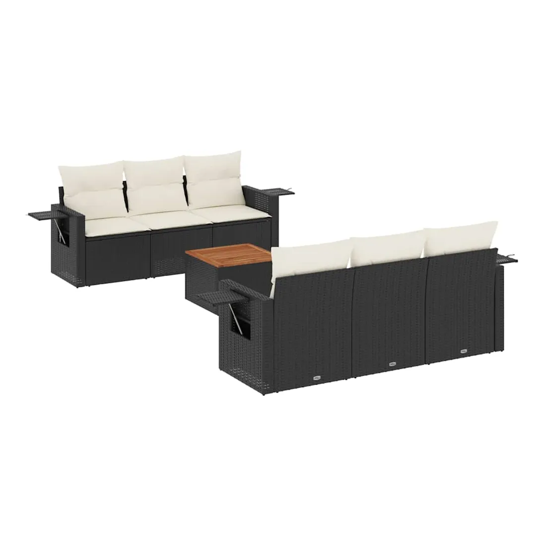 Cet ensemble de canapés de jardin est le complément parfait de votre arrière-cour, terrasse ou patio, offrant un espace confortable et accueillant pour discuter avec la famille et les amis ou simplement se détendre et profiter de l'extérieur. Matériau durable : la résine tressée, également connue sous le nom de poly rotin, est un matériau synthétique solide et nécessitant peu d'entretien qui ressemble au rotin naturel. Il est léger, facile à nettoyer et couramment utilisé pour les meubles d'extérieur en raison de sa durabilité et de ses propriétés de résistance aux intempéries.Fonction de rangement avec sac résistant à l'eau : chaque siège de jardin dispose d'un espace de rangement sous l'assise, complété par un sac résistant à l'eau pour ranger les coussins, les jouets et d'autres objets. Les sacs intérieurs sont dotés d'un couvercle et peuvent être solidement fixés aux sièges à l'aide de bandes auto-agrippantes pour plus de stabilité.Dessus stable et facile à nettoyer : cette table de jardin a un dessus en bois d'acacia robuste, durable et facile à nettoyer avec un chiffon humide.Table d'appoint pratique : ce mobilier d'extérieur comprend des tables d'appoint pliables avec un ressort à gaz sur les accoudoirs, offrant des endroits pratiques pour garder vos essentiels à portée de main.Conception modulaire : cet ensemble de meubles d'extérieur a une conception modulaire, ce qui le rend complètement flexible et facile à déplacer, afin que vous puissiez créer un agencement de meubles d'extérieur personnalisé. Bon à savoir :Pour que vos meubles d'extérieur restent beaux, nous vous recommandons de les protéger avec une housse imperméable.