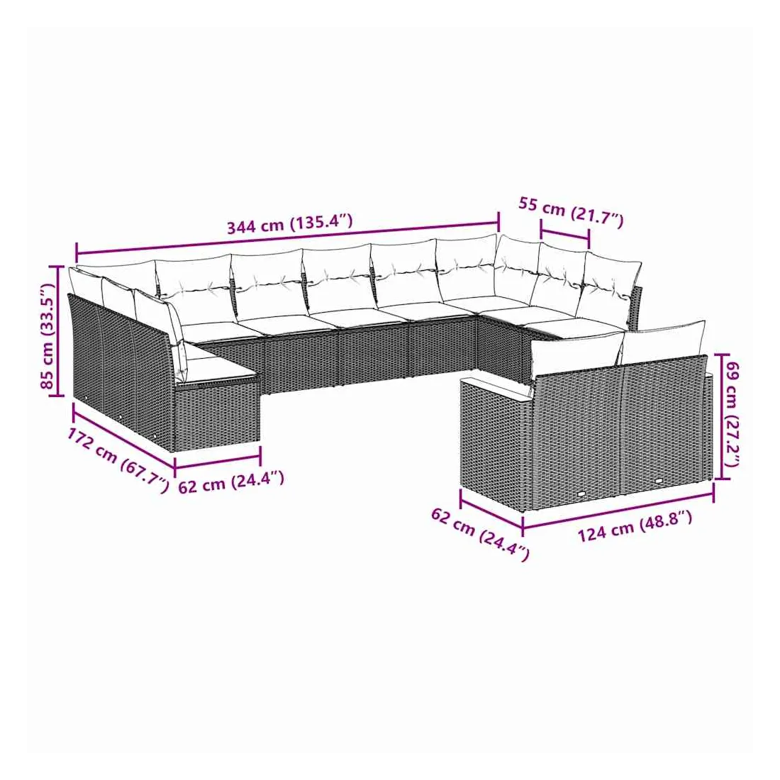 - Dimensions du coussin de dossier : 55 x 45 x 13 cm (L x l x é)