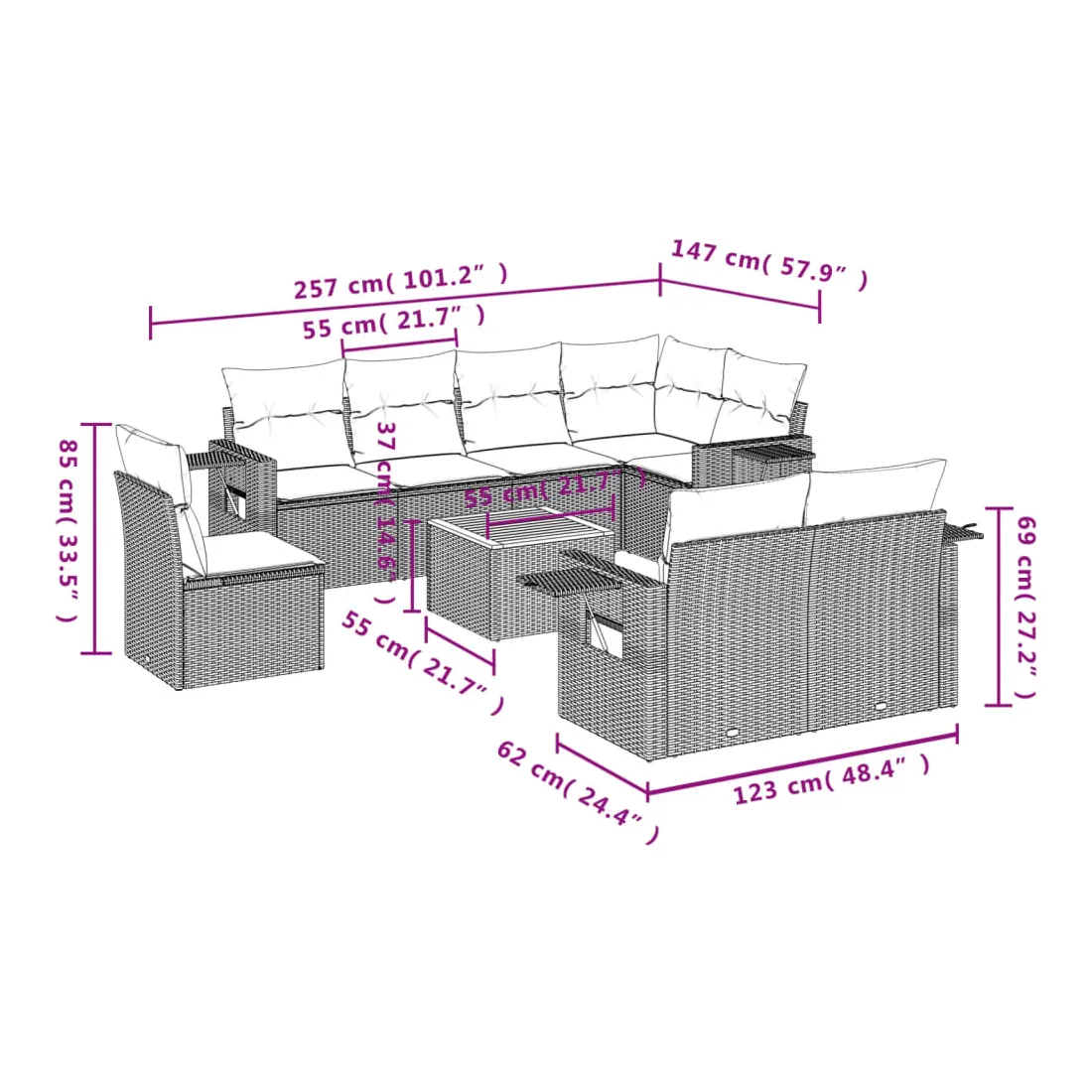 Cet ensemble de canapés de jardin est le complément parfait de votre arrière-cour, terrasse ou patio, offrant un espace confortable et accueillant pour discuter avec la famille et les amis ou simplement se détendre et profiter de l'extérieur. Matériau durable : la résine tressée, également connue sous le nom de poly rotin, est un matériau synthétique solide et nécessitant peu d'entretien qui ressemble au rotin naturel. Il est léger, facile à nettoyer et couramment utilisé pour les meubles d'extérieur en raison de sa durabilité et de ses propriétés de résistance aux intempéries.Fonction de rangement avec sac résistant à l'eau : chaque siège de jardin dispose d'un espace de rangement sous l'assise, complété par un sac résistant à l'eau pour ranger les coussins, les jouets et d'autres objets. Les sacs intérieurs sont dotés d'un couvercle et peuvent être solidement fixés aux sièges à l'aide de bandes auto-agrippantes pour plus de stabilité.Dessus stable et facile à nettoyer : cette table de jardin a un dessus en bois d'acacia robuste, durable et facile à nettoyer avec un chiffon humide.Table d'appoint pratique : ce mobilier d'extérieur comprend des tables d'appoint pliables avec un ressort à gaz sur les accoudoirs, offrant des endroits pratiques pour garder vos essentiels à portée de main.Conception modulaire : cet ensemble de meubles d'extérieur a une conception modulaire, ce qui le rend complètement flexible et facile à déplacer, afin que vous puissiez créer un agencement de meubles d'extérieur personnalisé. Bon à savoir :Pour que vos meubles d'extérieur restent beaux, nous vous recommandons de les protéger avec une housse imperméable.