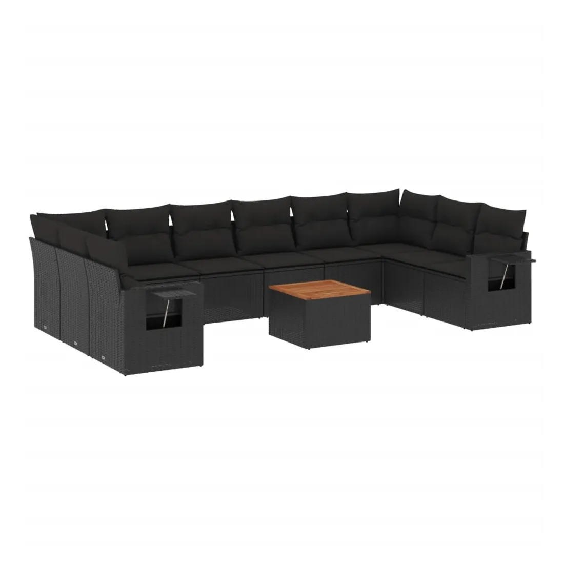 Salon de jardin 11 pcs avec coussins noir résine tressée