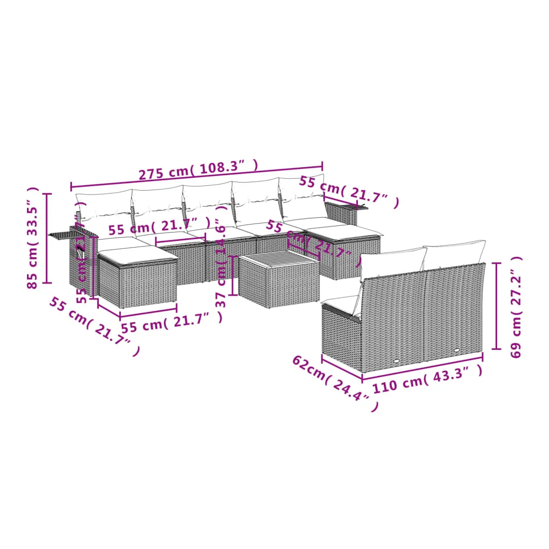 - Dimensions : 55 x 55 x 37 cm (L x l x H)