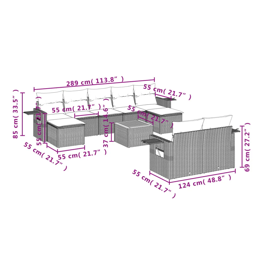 - 9 x coussin d'assise avec housse amovible et lavable