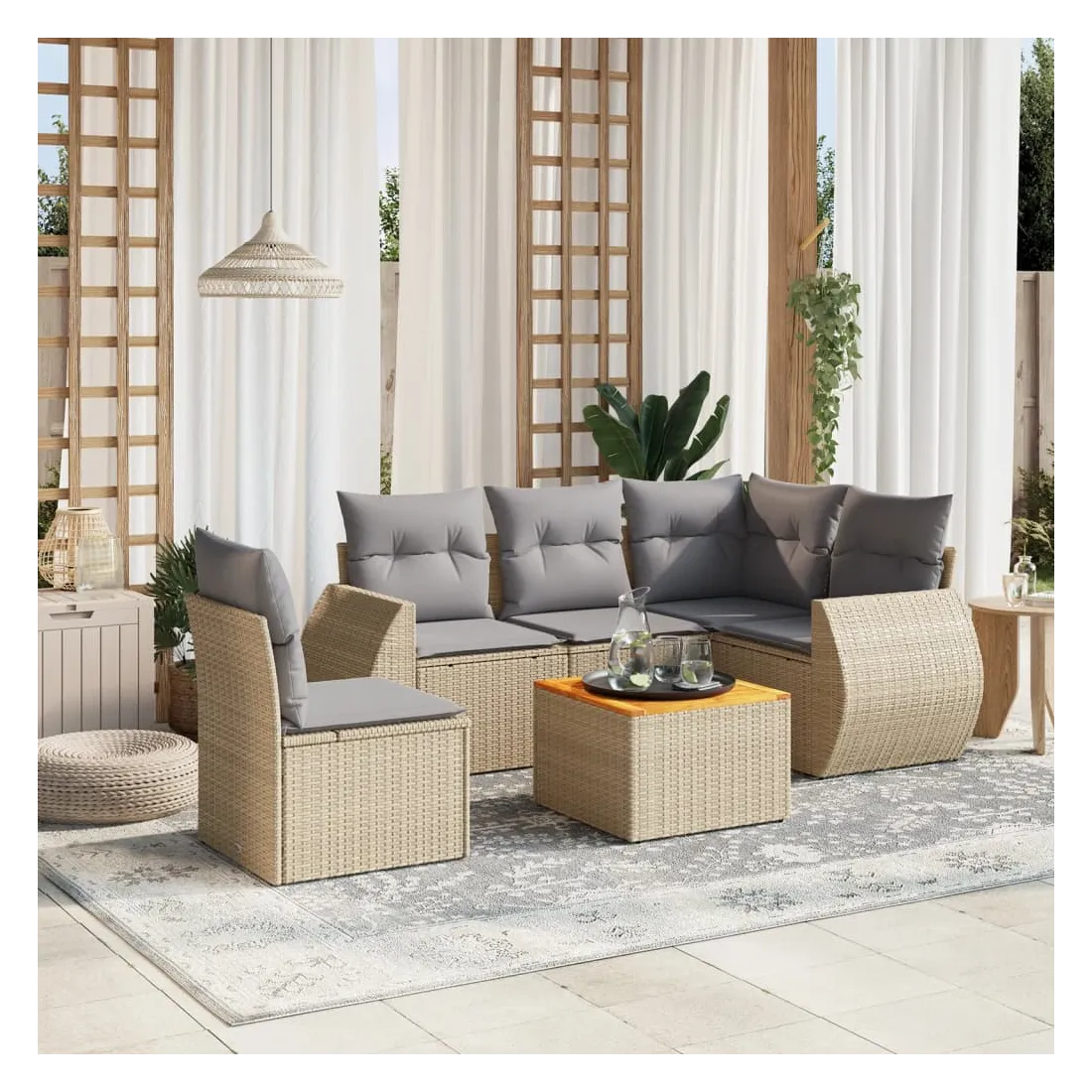 Salon de jardin avec coussins 6 pcs beige résine tressée