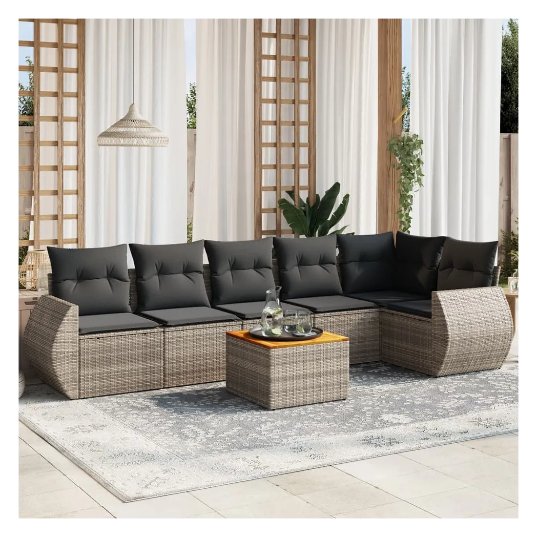 Cet ensemble de canapés de jardin est le complément parfait de votre arrière-cour, terrasse ou patio, offrant un espace confortable et accueillant pour discuter avec la famille et les amis ou simplement se détendre et profiter de l'extérieur. Matériau durable : la résine tressée, également connue sous le nom de poly rotin, est un matériau synthétique solide et nécessitant peu d'entretien qui ressemble au rotin naturel. Il est léger, facile à nettoyer et couramment utilisé pour les meubles d'extérieur en raison de sa durabilité et de ses propriétés de résistance aux intempéries.Dessus stable et facile à nettoyer : cette table de jardin a un dessus en bois d'acacia robuste, durable et facile à nettoyer avec un chiffon humide. Fonction de rangement avec sac résistant à l'eau : chaque siège de jardin dispose d'un espace de rangement sous l'assise, complété par un sac résistant à l'eau pour ranger les coussins, les jouets et d'autres objets. Les sacs intérieurs sont dotés d'un couvercle et peuvent être solidement fixés aux sièges à l'aide de bandes auto-agrippantes pour plus de stabilité.Expérience d'assise confortable : ce mobilier d'extérieur, doté de coussins épais, offre une expérience d'assise confortable.Conception modulaire : cet ensemble de meubles d'extérieur a une conception modulaire, ce qui le rend complètement flexible et facile à déplacer, afin que vous puissiez créer un agencement de meubles d'extérieur personnalisé. Bon à savoir :Pour que vos meubles d'extérieur restent beaux, nous vous recommandons de les protéger avec une housse imperméable.