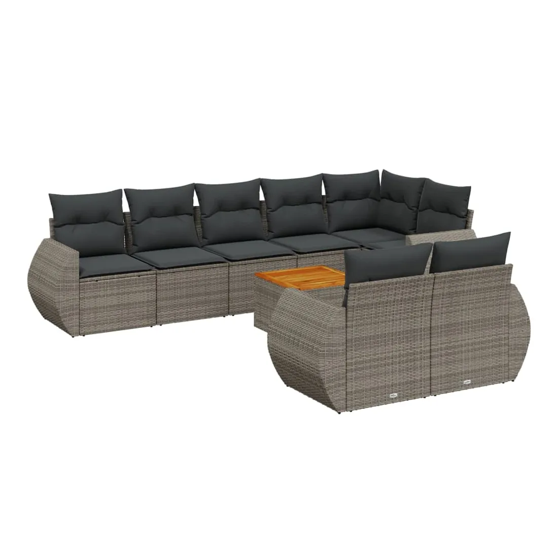 Cet ensemble de canapés de jardin est le complément parfait de votre arrière-cour, terrasse ou patio, offrant un espace confortable et accueillant pour discuter avec la famille et les amis ou simplement se détendre et profiter de l'extérieur. Matériau durable : la résine tressée, également connue sous le nom de poly rotin, est un matériau synthétique solide et nécessitant peu d'entretien qui ressemble au rotin naturel. Il est léger, facile à nettoyer et couramment utilisé pour les meubles d'extérieur en raison de sa durabilité et de ses propriétés de résistance aux intempéries.Dessus stable et facile à nettoyer : cette table de jardin a un dessus en bois d'acacia robuste, durable et facile à nettoyer avec un chiffon humide. Fonction de rangement avec sac résistant à l'eau : chaque siège de jardin dispose d'un espace de rangement sous l'assise, complété par un sac résistant à l'eau pour ranger les coussins, les jouets et d'autres objets. Les sacs intérieurs sont dotés d'un couvercle et peuvent être solidement fixés aux sièges à l'aide de bandes auto-agrippantes pour plus de stabilité.Expérience d'assise confortable : ce mobilier d'extérieur, doté de coussins épais, offre une expérience d'assise confortable.Conception modulaire : cet ensemble de meubles d'extérieur a une conception modulaire, ce qui le rend complètement flexible et facile à déplacer, afin que vous puissiez créer un agencement de meubles d'extérieur personnalisé. Bon à savoir :Pour que vos meubles d'extérieur restent beaux, nous vous recommandons de les protéger avec une housse imperméable.