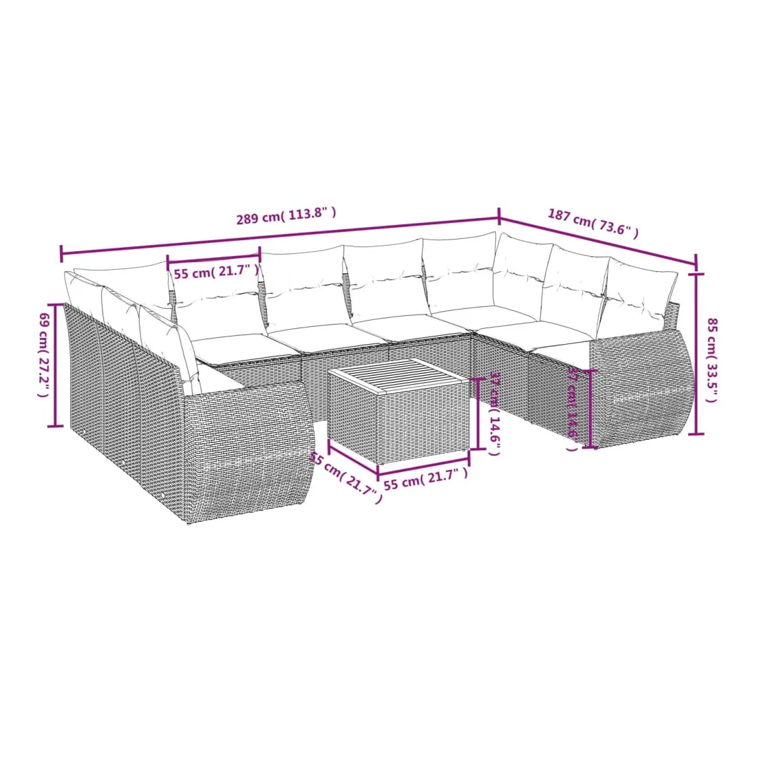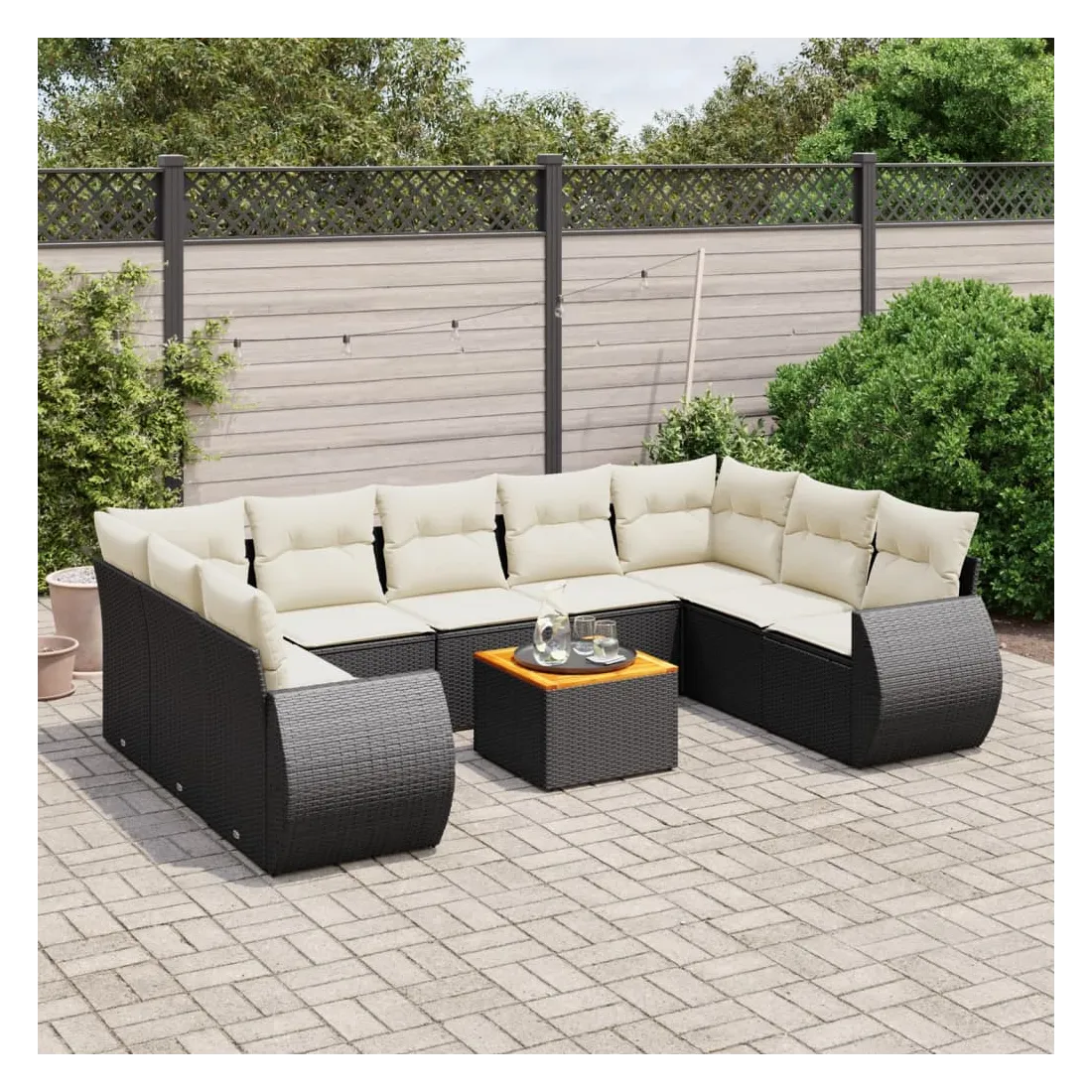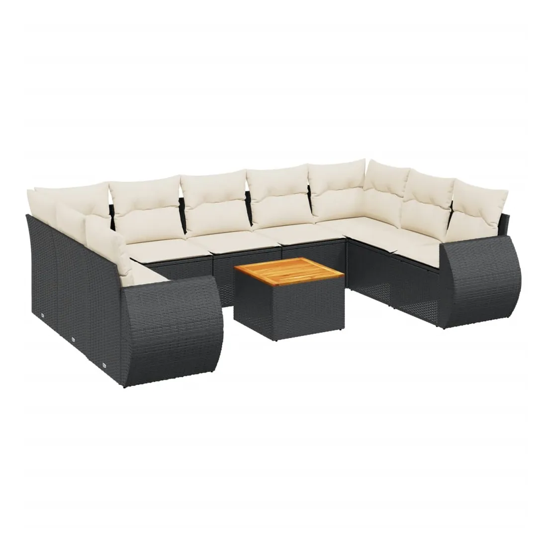 Salon de jardin 10 pcs avec coussins noir résine tressée