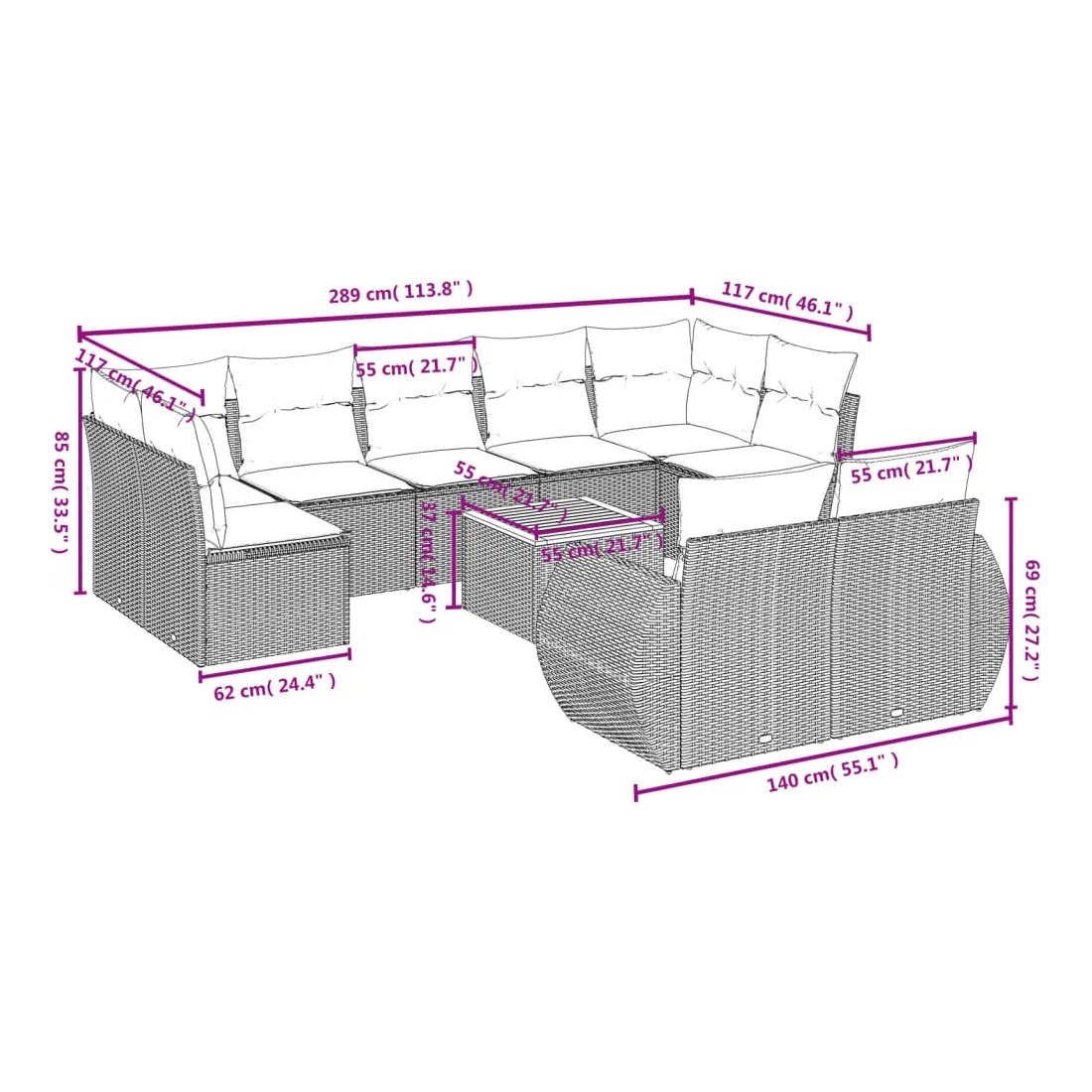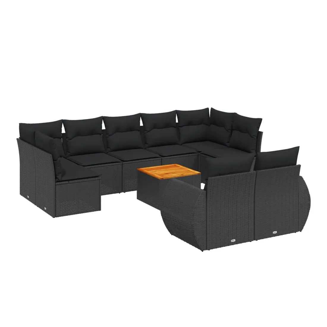 Salon de jardin 10 pcs avec coussins noir résine tressée