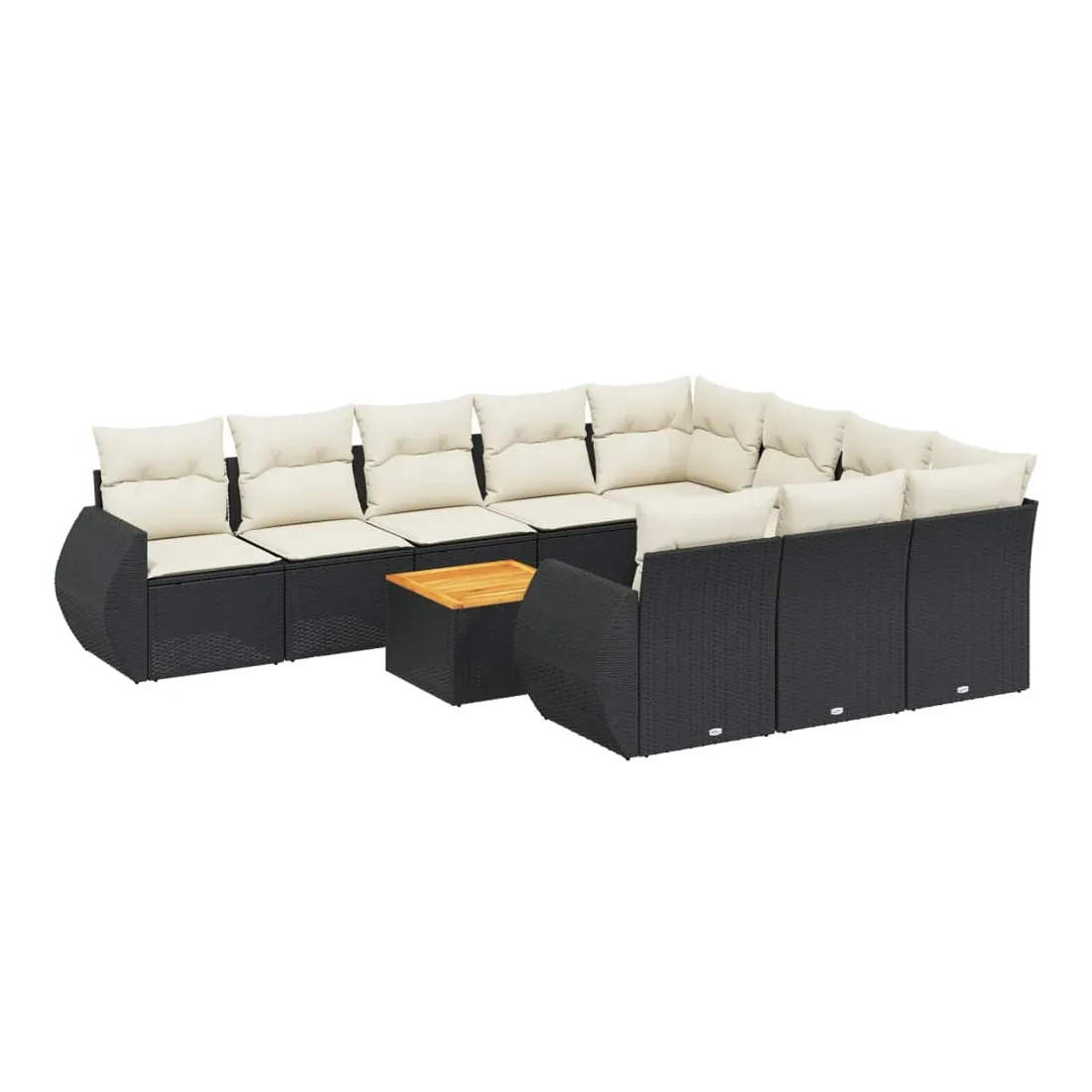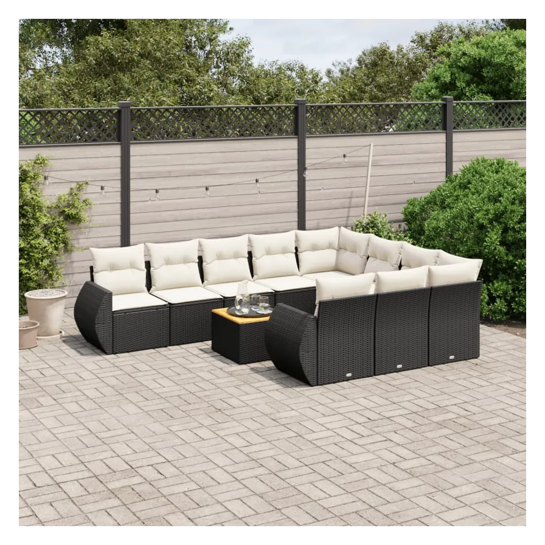 Salon de jardin 11 pcs avec coussins noir résine tressée