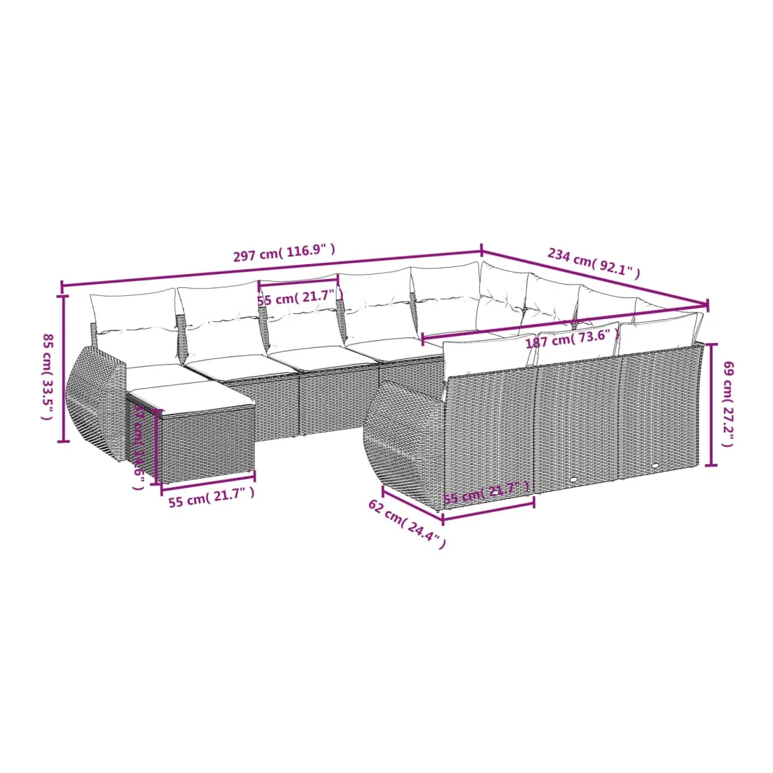 Salon de jardin 11 pcs avec coussins beige résine tressée