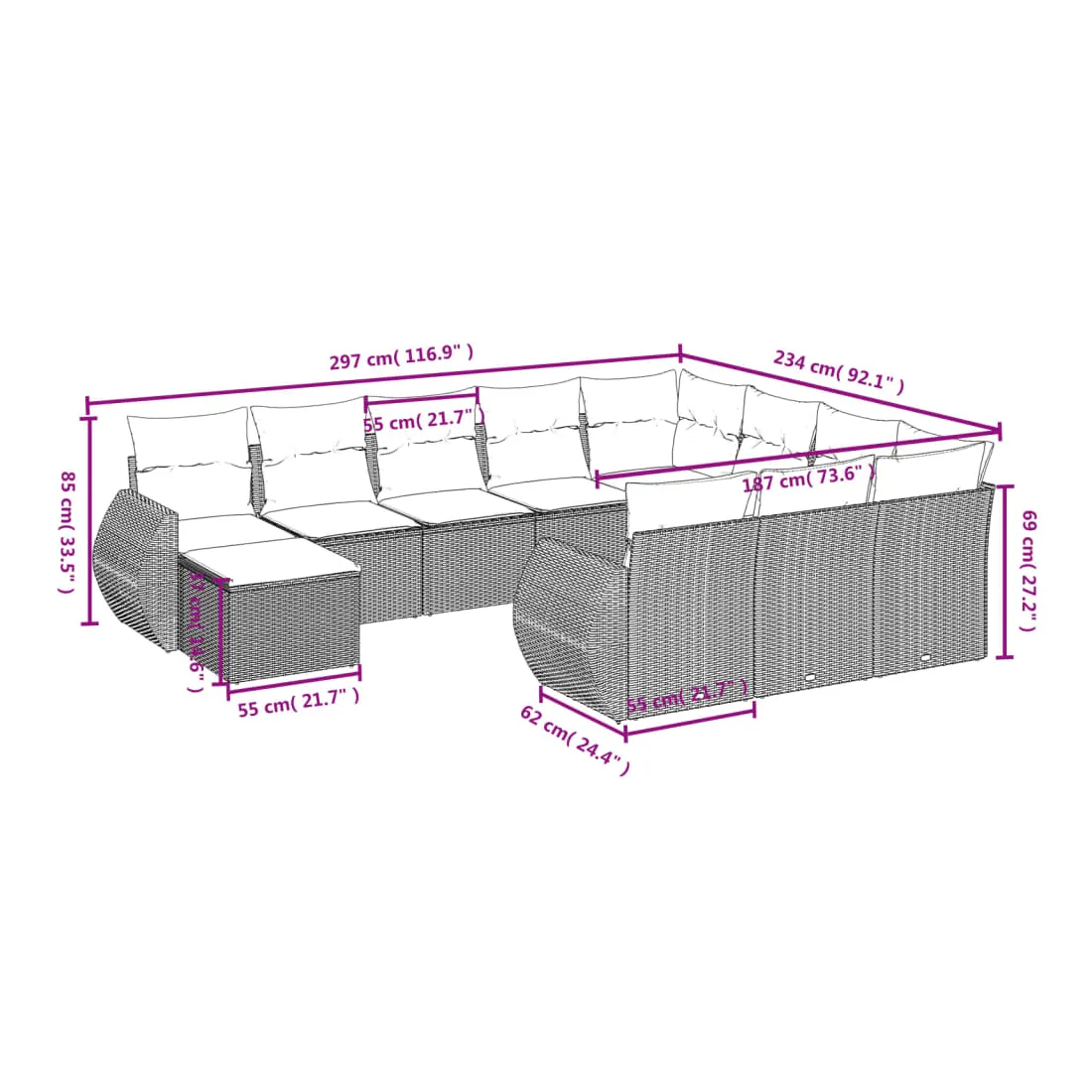 Salon de jardin 11 pcs avec coussins gris résine tressée