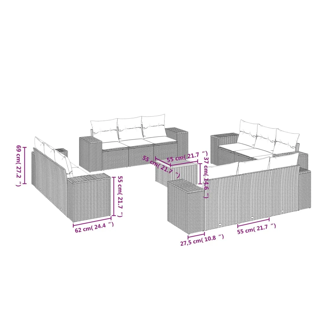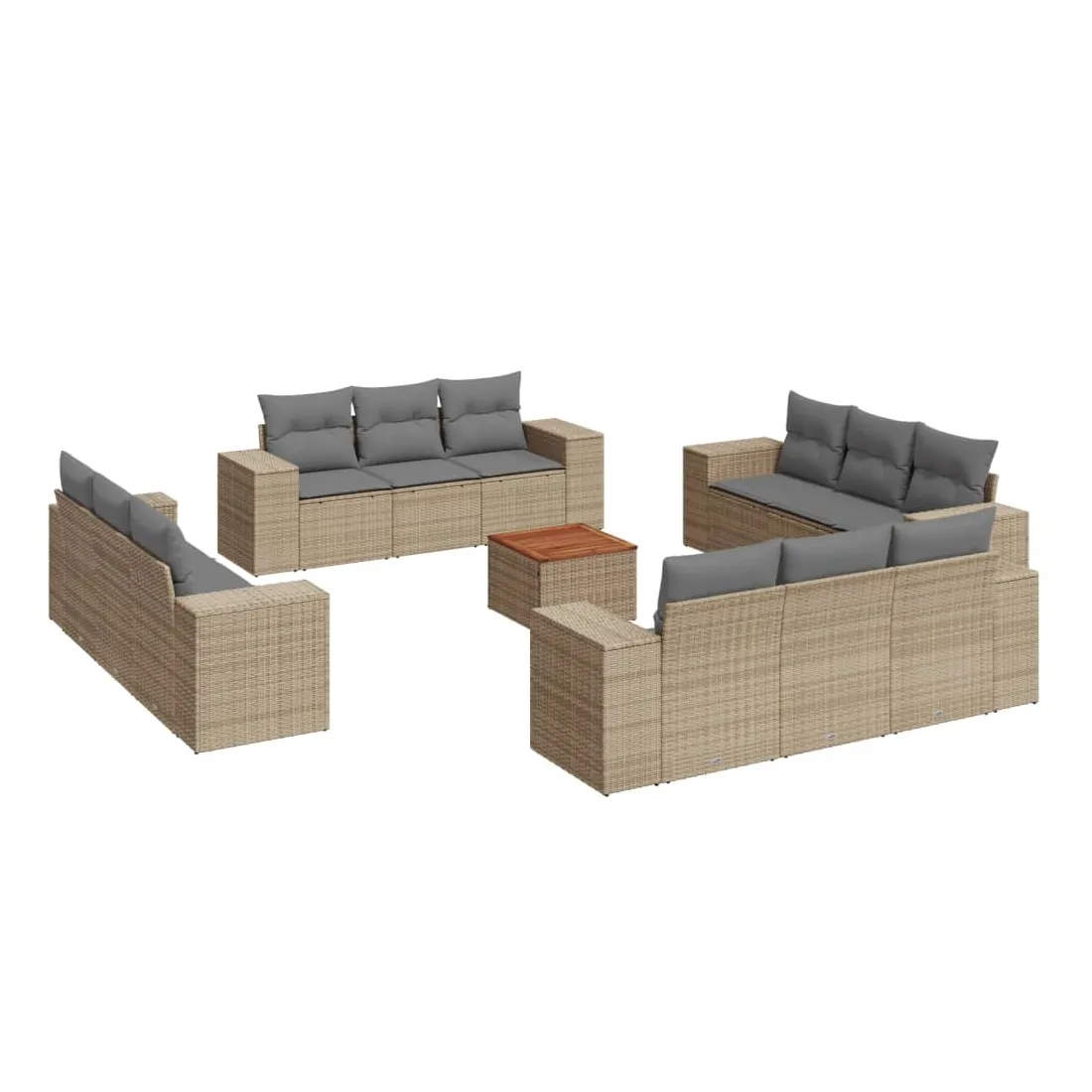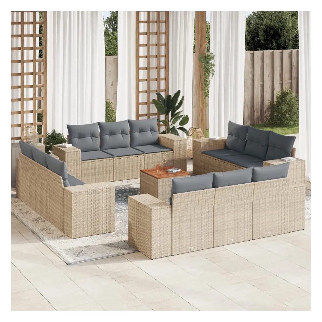 Cet ensemble de canapés de jardin est le complément parfait de votre arrière-cour, terrasse ou patio, offrant un espace confortable et accueillant pour discuter avec la famille et les amis ou simplement se détendre et profiter de l'extérieur. Matériau durable : la résine tressée, également connue sous le nom de poly rotin, est un matériau synthétique solide et nécessitant peu d'entretien qui ressemble au rotin naturel. Il est léger, facile à nettoyer et couramment utilisé pour les meubles d'extérieur en raison de sa durabilité et de ses propriétés de résistance aux intempéries. Fonction de rangement avec sac résistant à l'eau : chaque siège de jardin dispose d'un espace de rangement sous l'assise, complété par un sac résistant à l'eau pour ranger les coussins, les jouets et d'autres objets. Les sacs intérieurs sont dotés d'un couvercle et peuvent être solidement fixés aux sièges à l'aide de bandes auto-agrippantes pour plus de stabilité. Dessus stable et facile à nettoyer : cette table de jardin a un dessus en bois d'acacia robuste, durable et facile à nettoyer avec un chiffon humide. Expérience d'assise confortable : ce mobilier d'extérieur, doté de coussins épais, offre une expérience d'assise confortable. Conception modulaire : cet ensemble de meubles d'extérieur a une conception modulaire, ce qui le rend complètement flexible et facile à déplacer, afin que vous puissiez créer un agencement de meubles d'extérieur personnalisé. Bon à savoir :Pour que vos meubles d'extérieur restent beaux, nous vous recommandons de les protéger avec une housse imperméable.