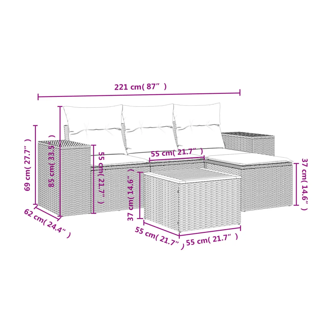 Cet ensemble de canapés de jardin est le complément parfait de votre arrière-cour, terrasse ou patio, offrant un espace confortable et accueillant pour discuter avec la famille et les amis ou simplement se détendre et profiter de l'extérieur. Matériau durable : la résine tressée, également connue sous le nom de poly rotin, est un matériau synthétique solide et nécessitant peu d'entretien qui ressemble au rotin naturel. Il est léger, facile à nettoyer et couramment utilisé pour les meubles d'extérieur en raison de sa durabilité et de ses propriétés de résistance aux intempéries. Fonction de rangement avec sac résistant à l'eau : chaque siège de jardin dispose d'un espace de rangement sous l'assise, complété par un sac résistant à l'eau pour ranger les coussins, les jouets et d'autres objets. Les sacs intérieurs sont dotés d'un couvercle et peuvent être solidement fixés aux sièges à l'aide de bandes auto-agrippantes pour plus de stabilité. Dessus stable et facile à nettoyer : cette table de jardin a un dessus en bois d'acacia robuste, durable et facile à nettoyer avec un chiffon humide. Expérience d'assise confortable : ce mobilier d'extérieur, doté de coussins épais, offre une expérience d'assise confortable. Conception modulaire : cet ensemble de meubles d'extérieur a une conception modulaire, ce qui le rend complètement flexible et facile à déplacer, afin que vous puissiez créer un agencement de meubles d'extérieur personnalisé. Bon à savoir :Pour que vos meubles d'extérieur restent beaux, nous vous recommandons de les protéger avec une housse imperméable.
