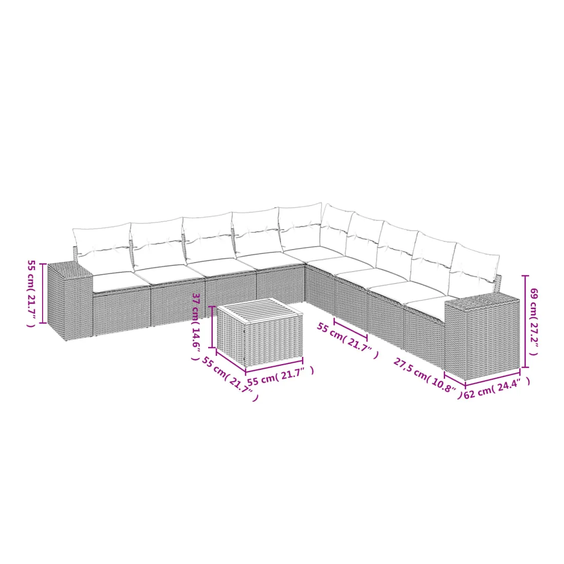 - 9 x coussin d'assise avec housse amovible et lavable