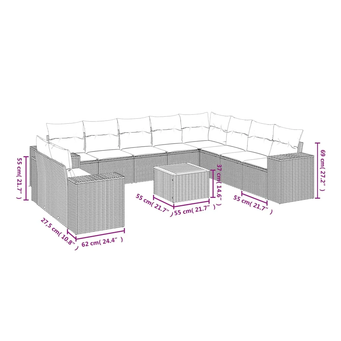 - Dimensions : 55 x 55 x 37 cm (L x l x H)