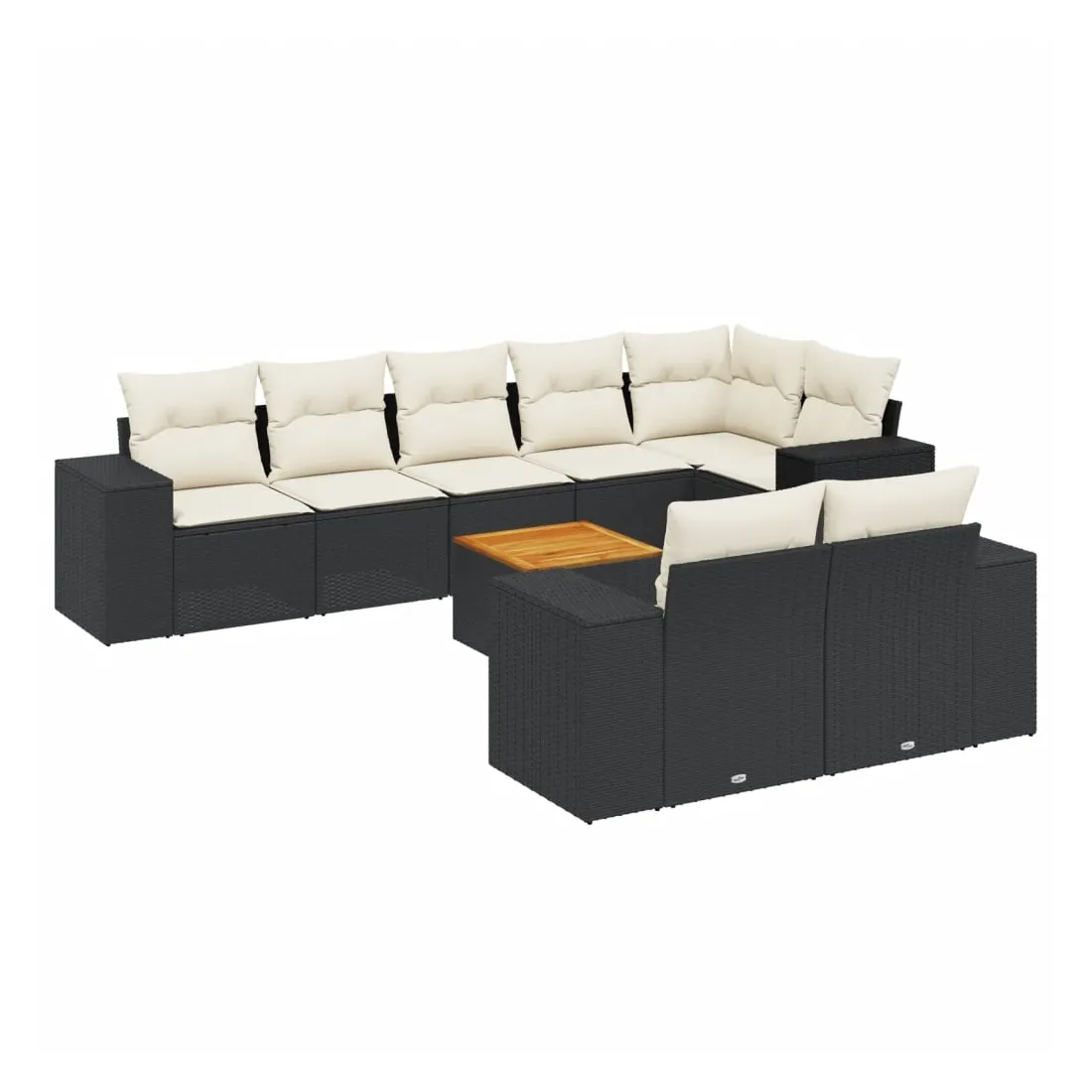 Cet ensemble de canapés de jardin est le complément parfait de votre arrière-cour, terrasse ou patio, offrant un espace confortable et accueillant pour discuter avec la famille et les amis ou simplement se détendre et profiter de l'extérieur. Matériau durable : la résine tressée, également connue sous le nom de poly rotin, est un matériau synthétique solide et nécessitant peu d'entretien qui ressemble au rotin naturel. Il est léger, facile à nettoyer et couramment utilisé pour les meubles d'extérieur en raison de sa durabilité et de ses propriétés de résistance aux intempéries.Dessus stable et facile à nettoyer : cette table de jardin a un dessus en bois d'acacia robuste, durable et facile à nettoyer avec un chiffon humide. Fonction de rangement avec sac résistant à l'eau : chaque siège de jardin dispose d'un espace de rangement sous l'assise, complété par un sac résistant à l'eau pour ranger les coussins, les jouets et d'autres objets. Les sacs intérieurs sont dotés d'un couvercle et peuvent être solidement fixés aux sièges à l'aide de bandes auto-agrippantes pour plus de stabilité.Expérience d'assise confortable : ce mobilier d'extérieur, doté de coussins épais, offre une expérience d'assise confortable.Conception modulaire : cet ensemble de meubles d'extérieur a une conception modulaire, ce qui le rend complètement flexible et facile à déplacer, afin que vous puissiez créer un agencement de meubles d'extérieur personnalisé. Bon à savoir :Pour que vos meubles d'extérieur restent beaux, nous vous recommandons de les protéger avec une housse imperméable.