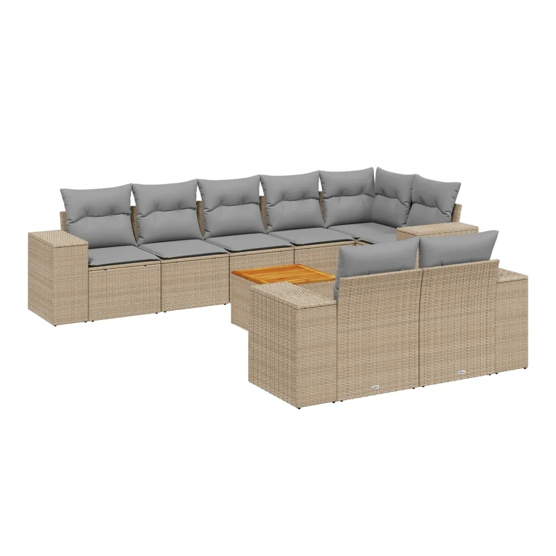 Salon de jardin avec coussins 9 pcs beige résine tressée