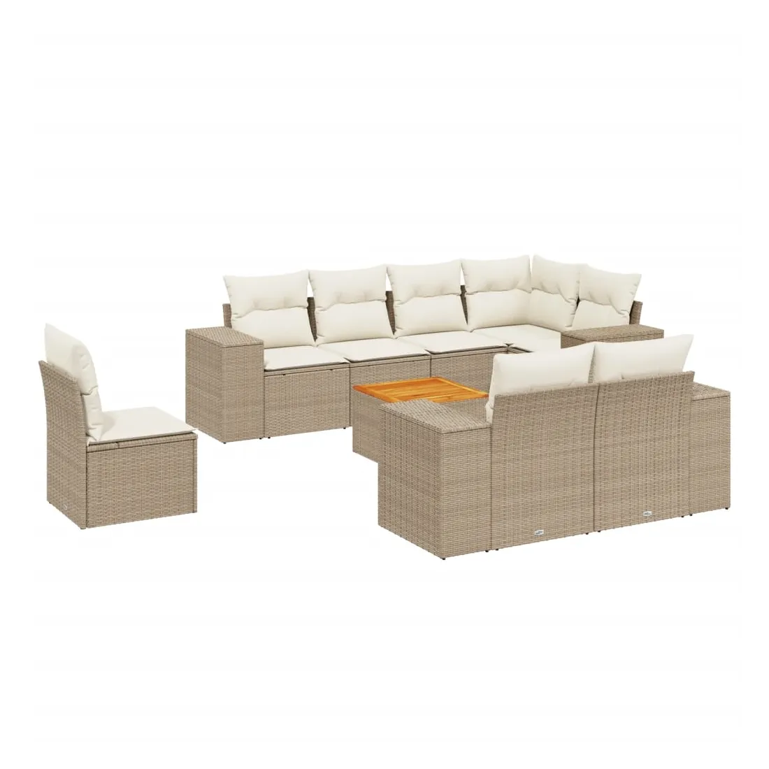 Cet ensemble de canapés de jardin est le complément parfait de votre arrière-cour, terrasse ou patio, offrant un espace confortable et accueillant pour discuter avec la famille et les amis ou simplement se détendre et profiter de l'extérieur. Matériau durable : la résine tressée, également connue sous le nom de poly rotin, est un matériau synthétique solide et nécessitant peu d'entretien qui ressemble au rotin naturel. Il est léger, facile à nettoyer et couramment utilisé pour les meubles d'extérieur en raison de sa durabilité et de ses propriétés de résistance aux intempéries.Dessus stable et facile à nettoyer : cette table de jardin a un dessus en bois d'acacia robuste, durable et facile à nettoyer avec un chiffon humide. Fonction de rangement avec sac résistant à l'eau : chaque siège de jardin dispose d'un espace de rangement sous l'assise, complété par un sac résistant à l'eau pour ranger les coussins, les jouets et d'autres objets. Les sacs intérieurs sont dotés d'un couvercle et peuvent être solidement fixés aux sièges à l'aide de bandes auto-agrippantes pour plus de stabilité.Expérience d'assise confortable : ce mobilier d'extérieur, doté de coussins épais, offre une expérience d'assise confortable.Conception modulaire : cet ensemble de meubles d'extérieur a une conception modulaire, ce qui le rend complètement flexible et facile à déplacer, afin que vous puissiez créer un agencement de meubles d'extérieur personnalisé. Bon à savoir :Pour que vos meubles d'extérieur restent beaux, nous vous recommandons de les protéger avec une housse imperméable.