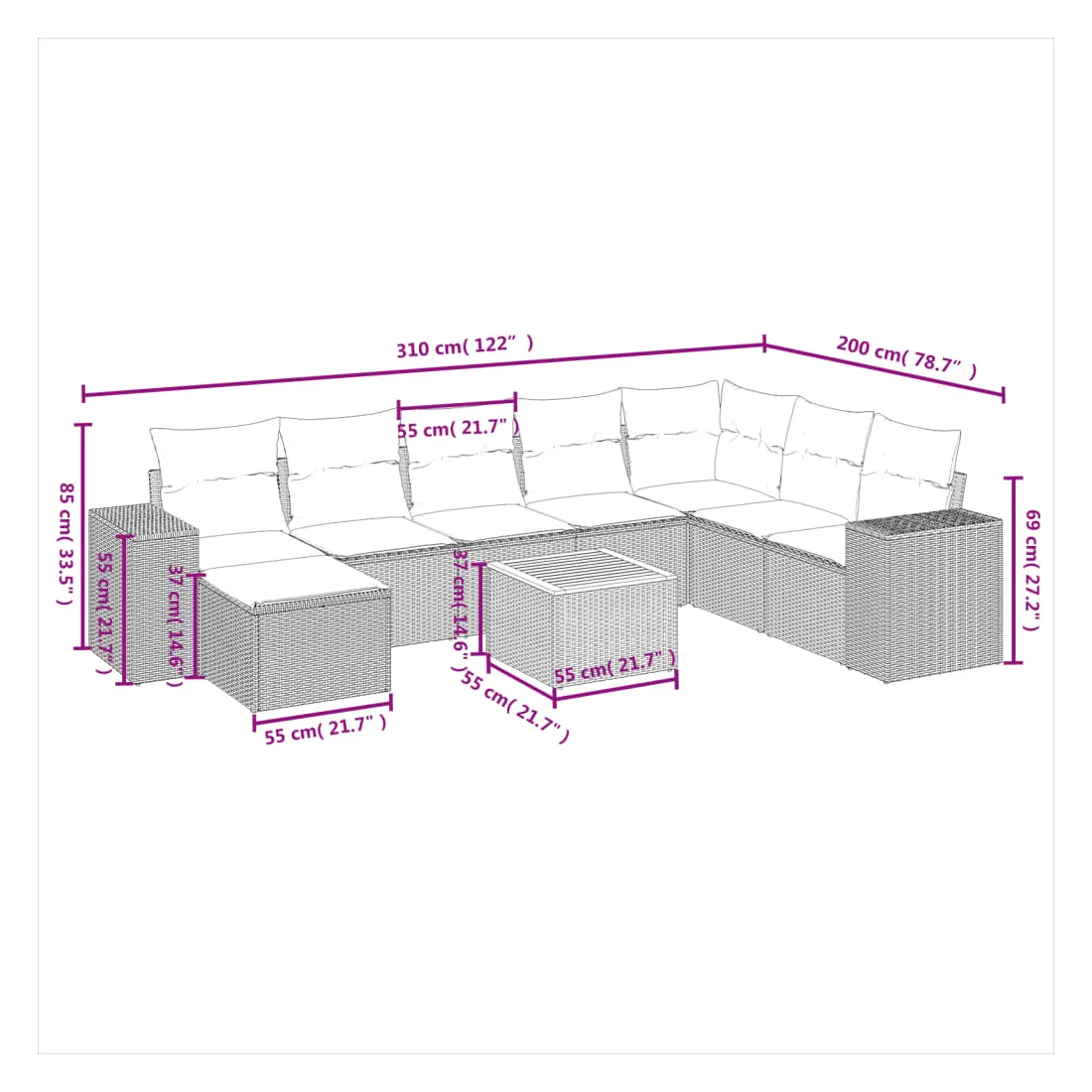 - Dimensions : 55 x 55 x 37 cm (L x l x H)